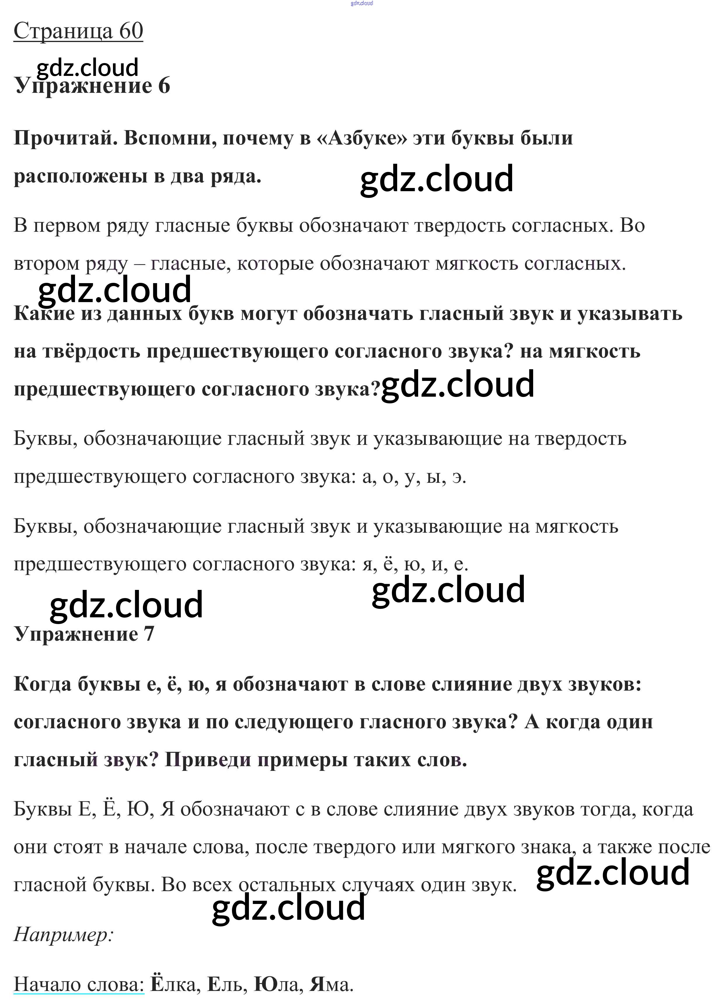 Ответ на задание стр. 60 Учебник Русский язык за 1 (первый) класс Канакина, Горецкий Школа России 2013