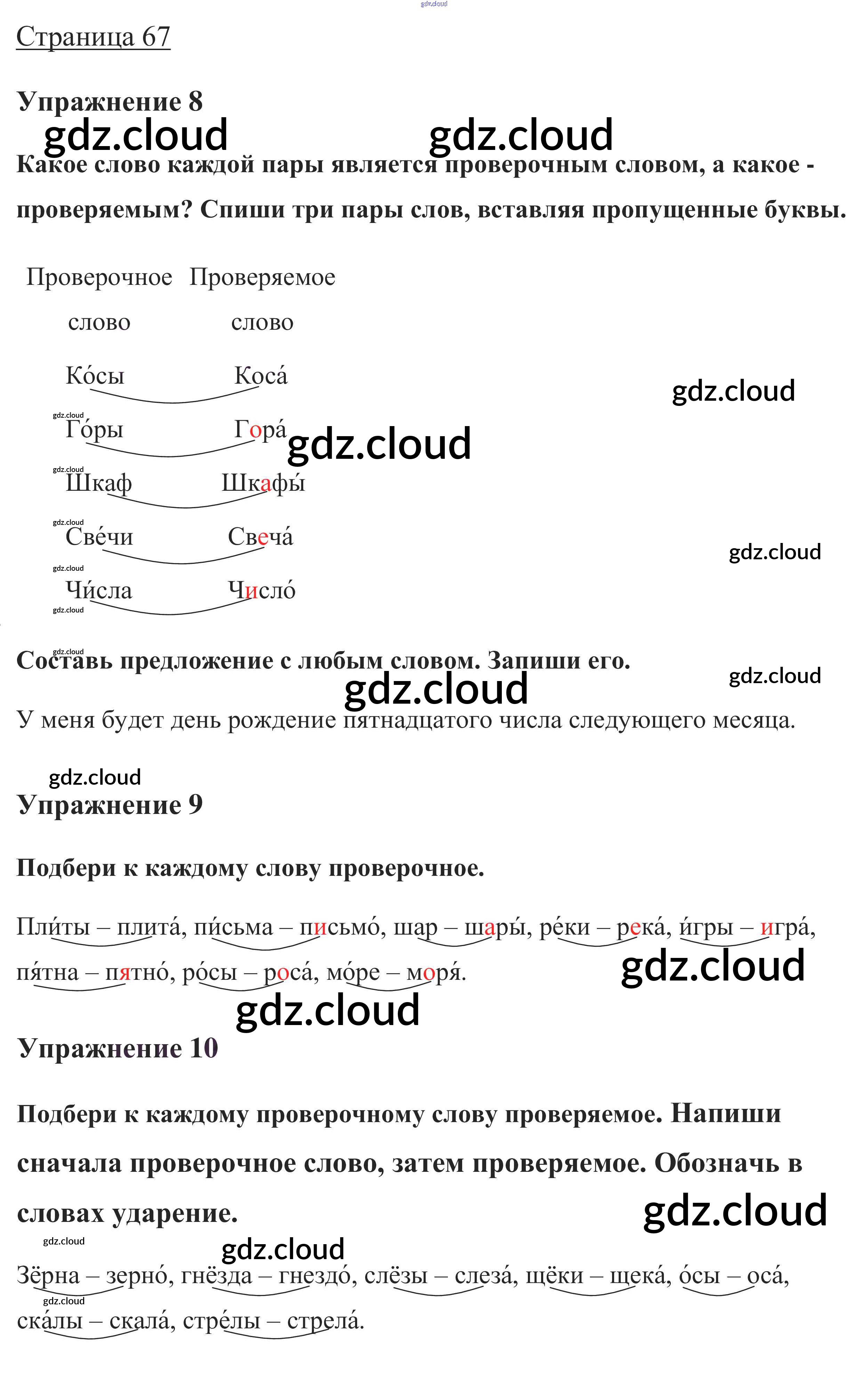 Ответ на задание стр. 67 Учебник Русский язык за 1 (первый) класс Канакина, Горецкий Школа России 2013