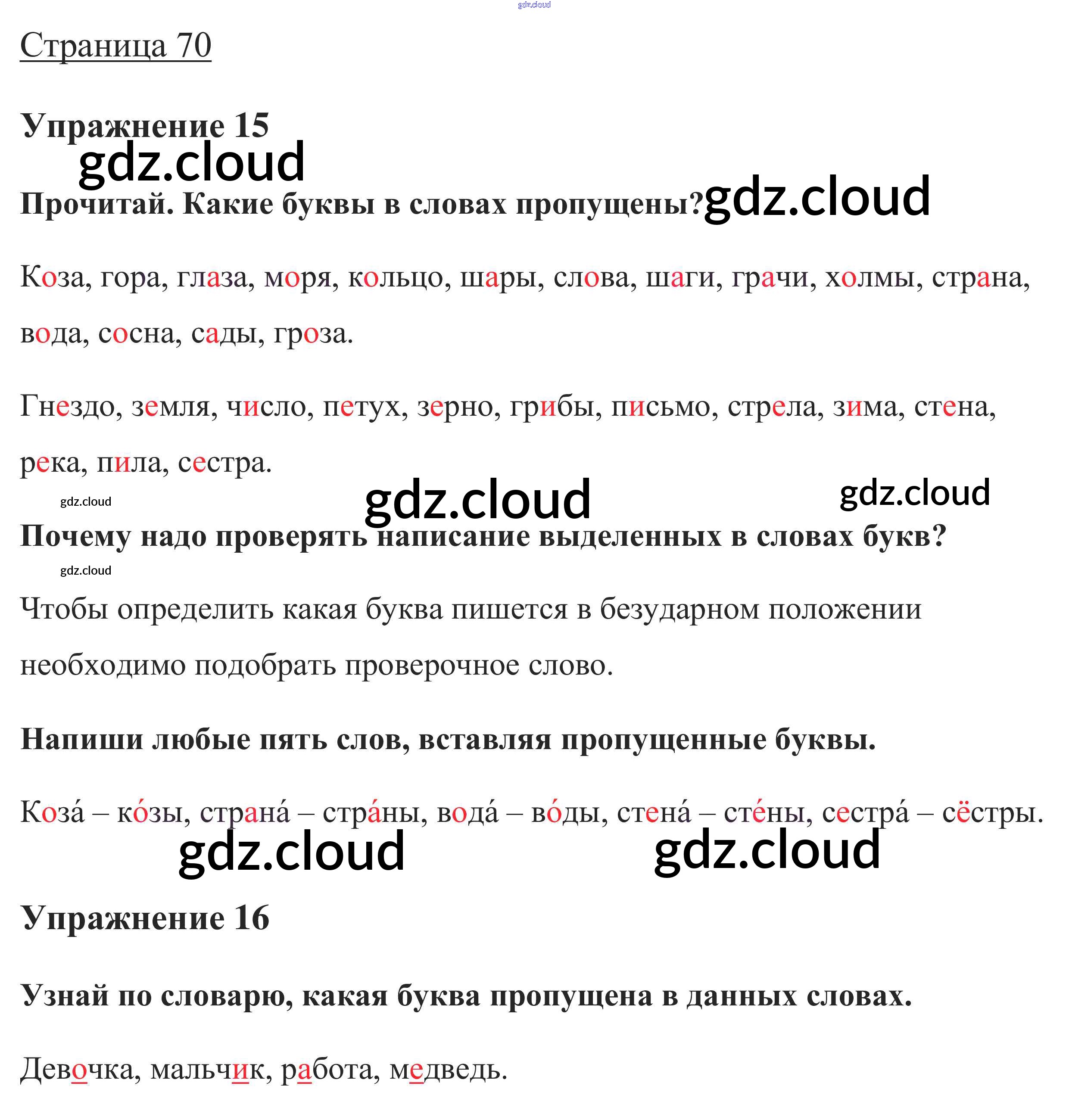 Ответ на задание стр. 70 Учебник Русский язык за 1 (первый) класс Канакина, Горецкий Школа России 2013