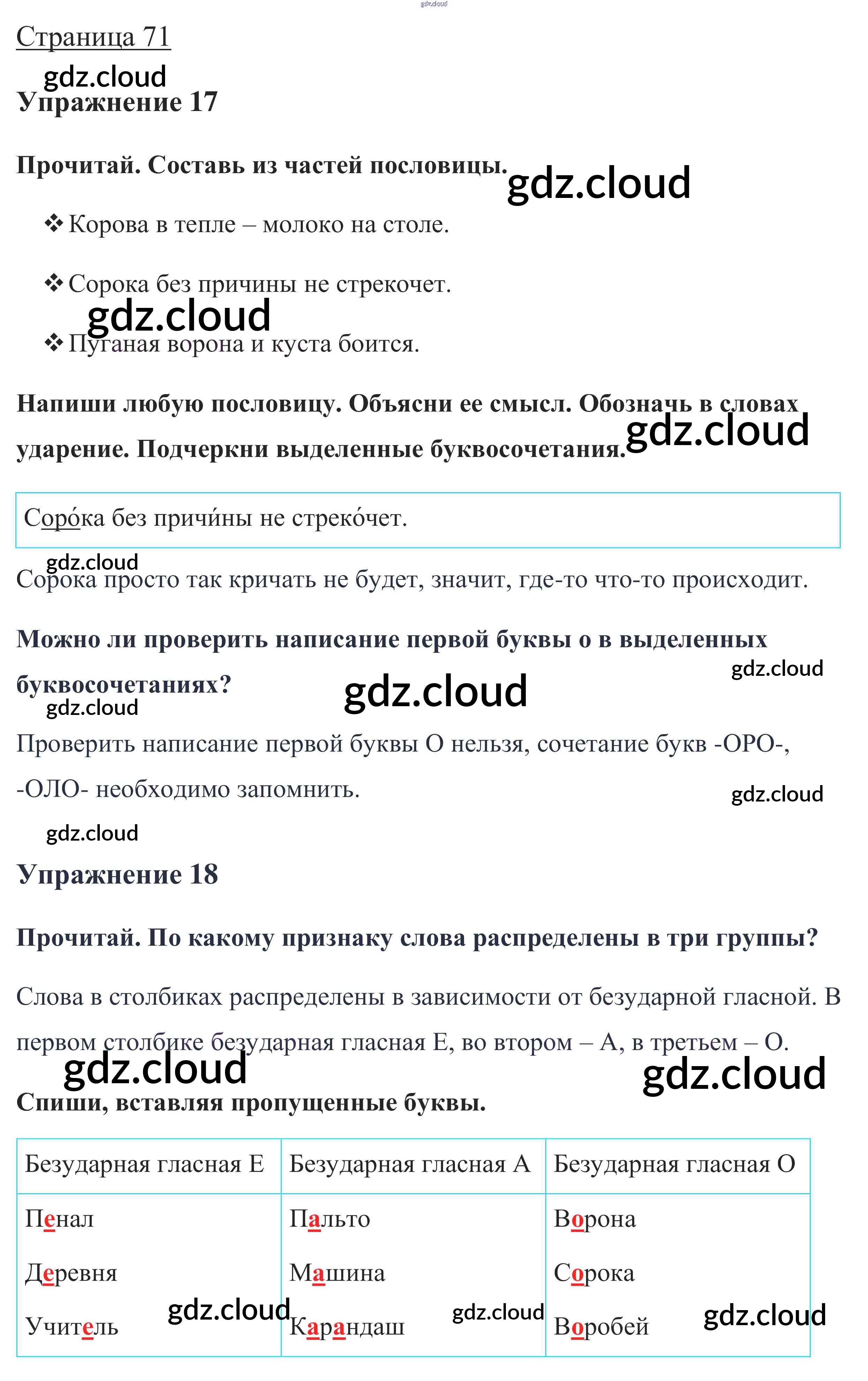 Ответ на задание стр. 71 Учебник Русский язык за 1 (первый) класс Канакина, Горецкий Школа России 2013