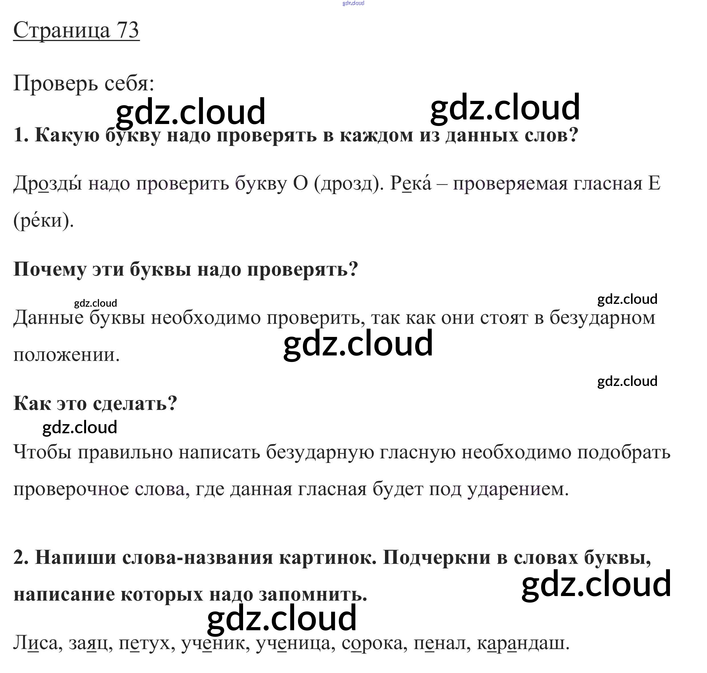 Ответ на задание стр. 73 Учебник Русский язык за 1 (первый) класс Канакина, Горецкий Школа России 2013