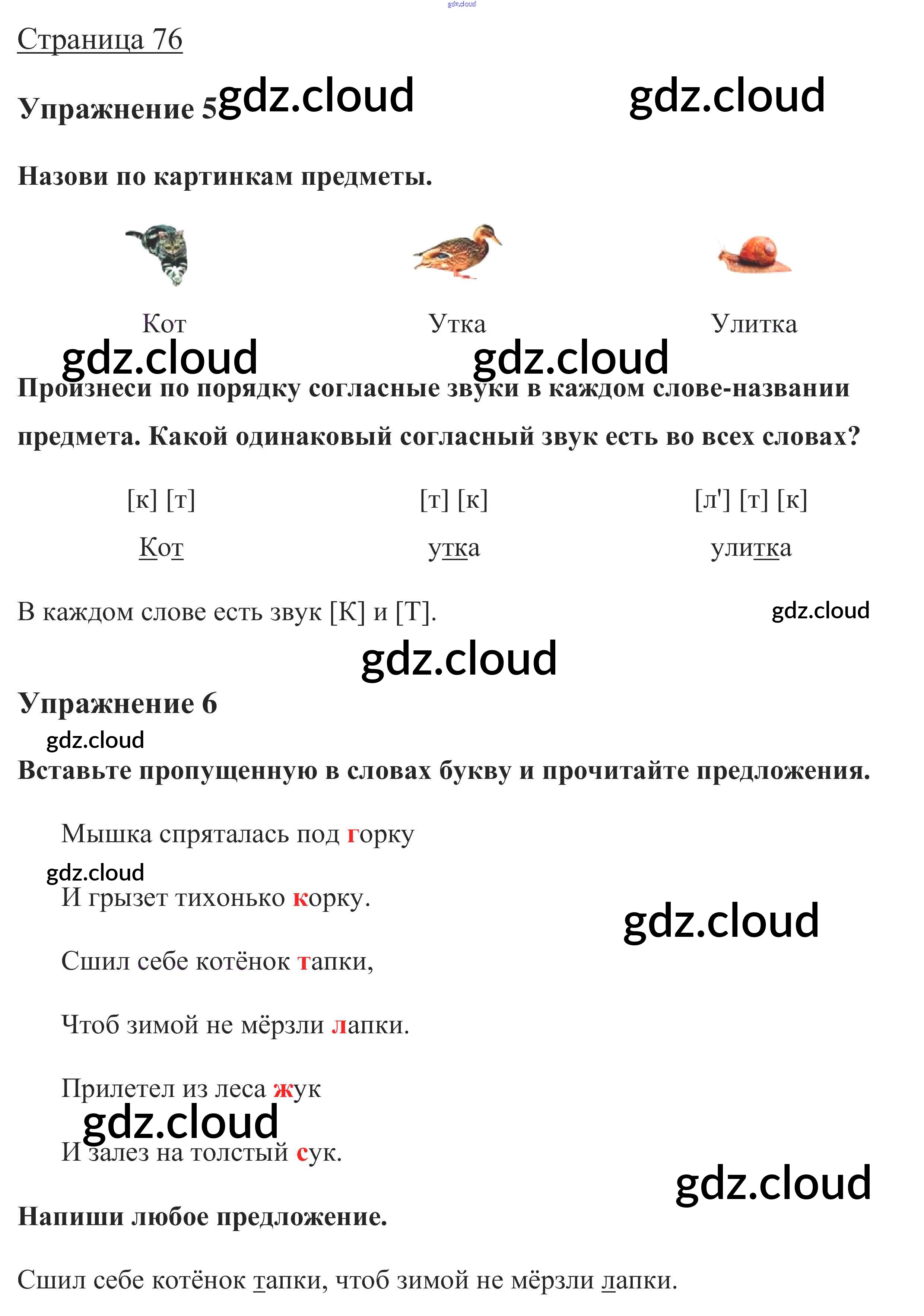 Ответ на задание стр. 76 Учебник Русский язык за 1 (первый) класс Канакина, Горецкий Школа России 2013