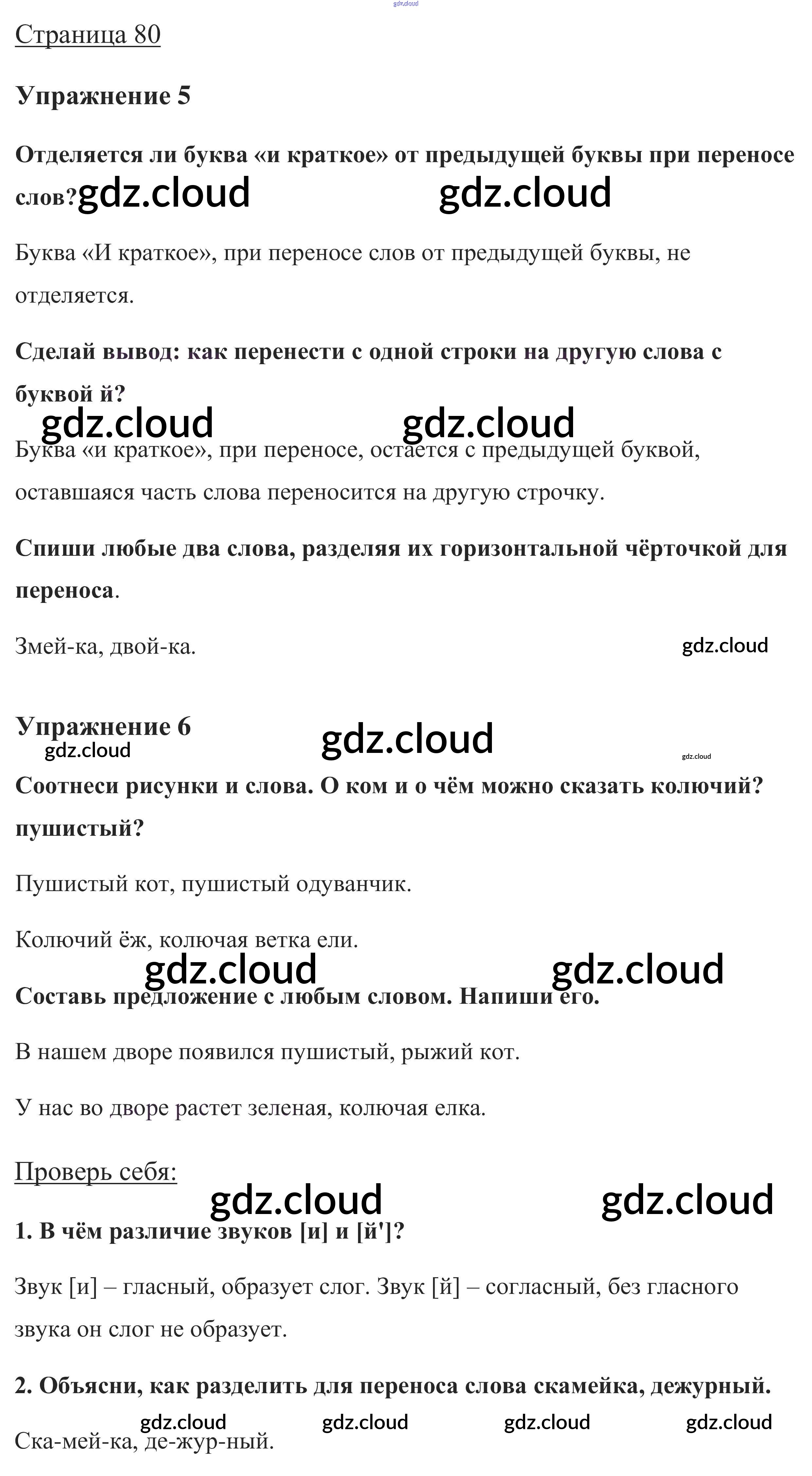 Ответ на задание стр. 80 Учебник Русский язык за 1 (первый) класс Канакина, Горецкий Школа России 2013
