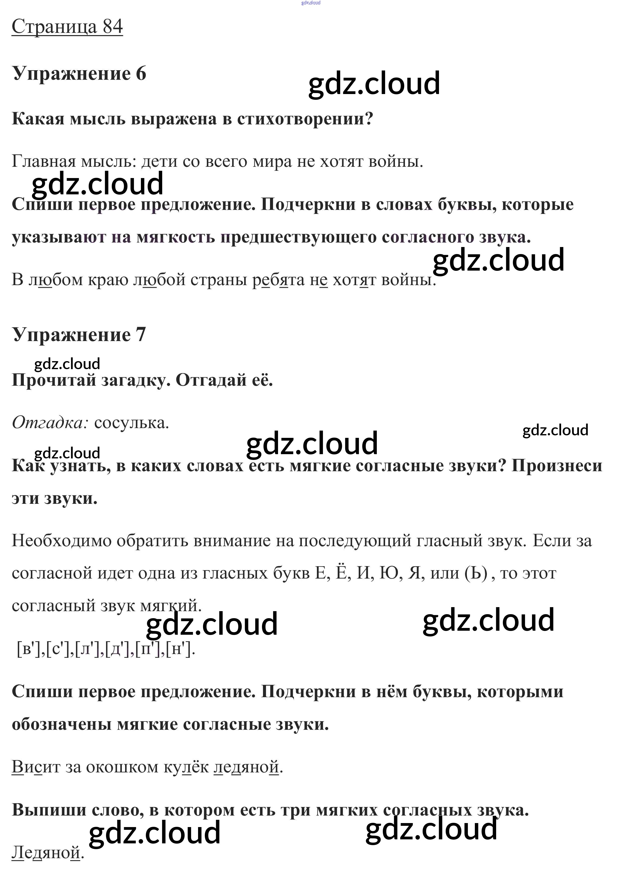 Ответ на задание стр. 84 Учебник Русский язык за 1 (первый) класс Канакина, Горецкий Школа России 2013