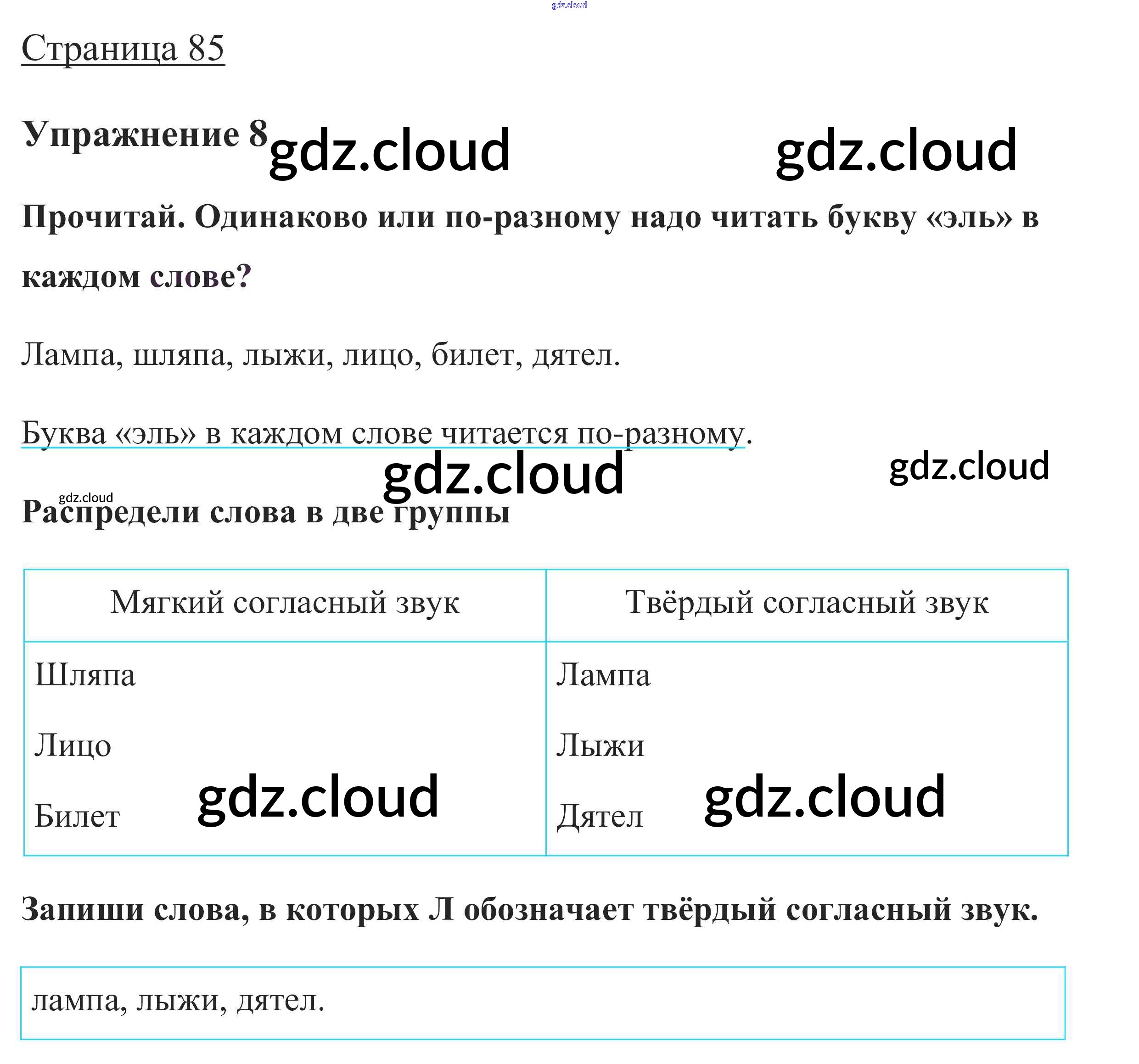 Ответ на задание стр. 85 Учебник Русский язык за 1 (первый) класс Канакина, Горецкий Школа России 2013