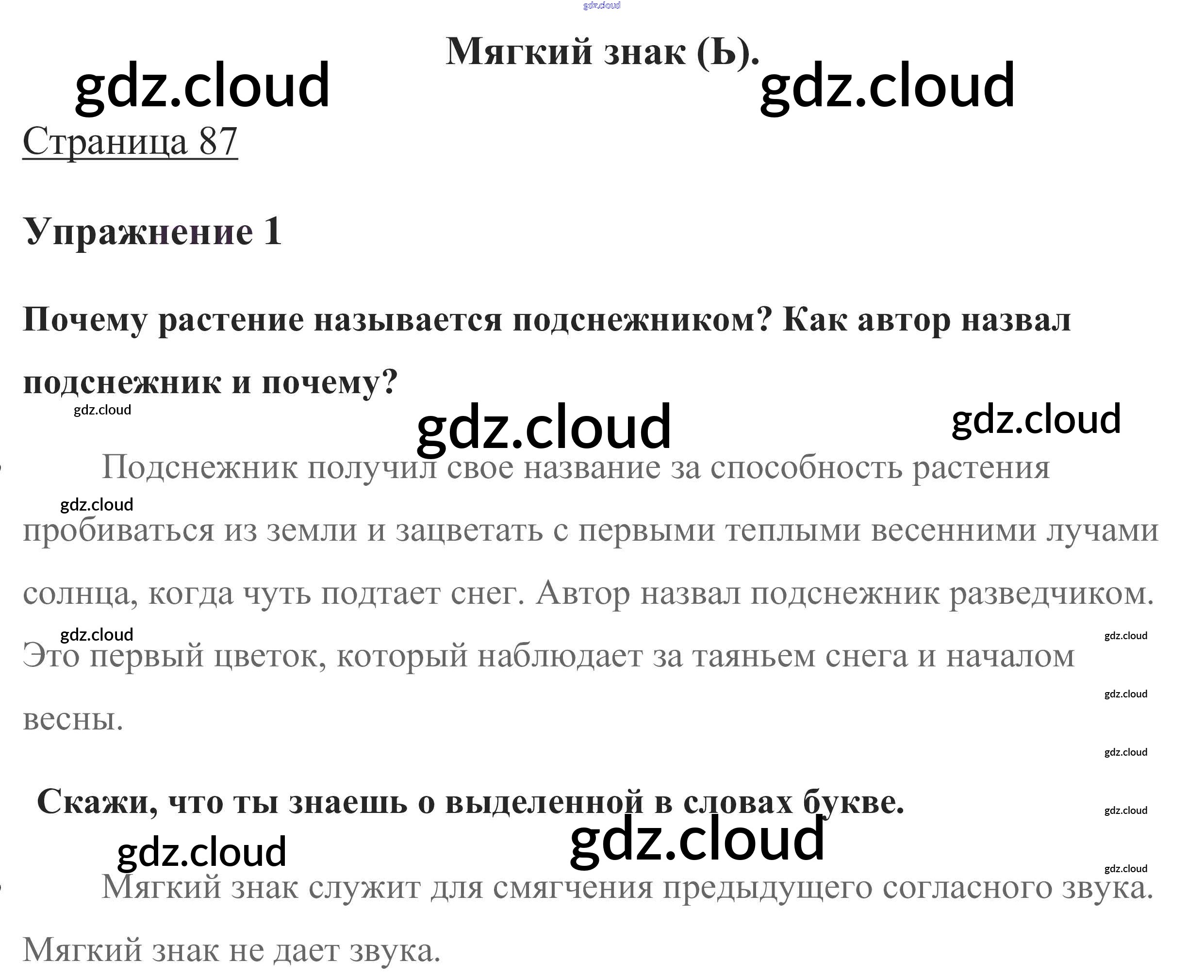 Ответ на задание стр. 87 Учебник Русский язык за 1 (первый) класс Канакина, Горецкий Школа России 2013