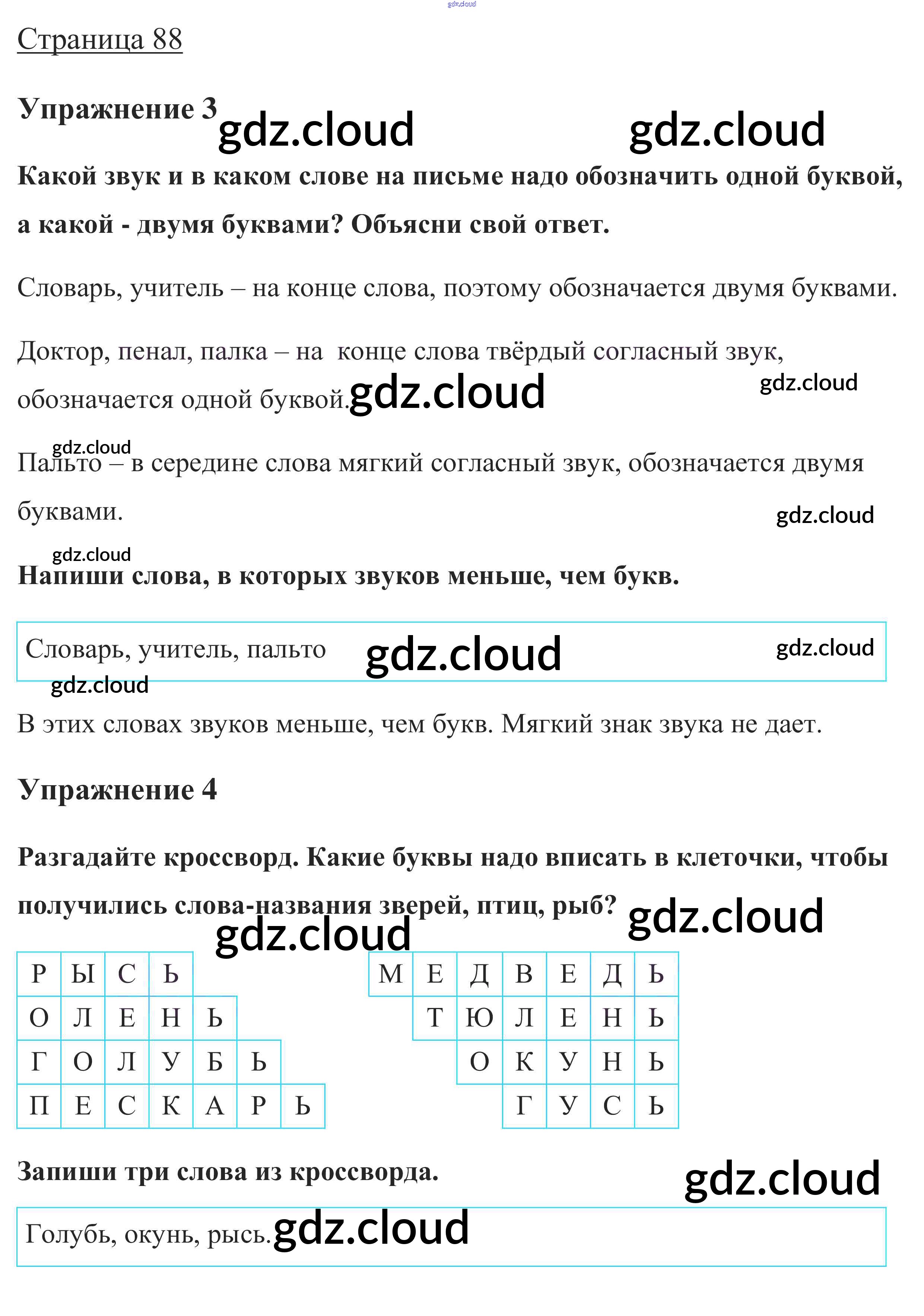 Ответ на задание стр. 88 Учебник Русский язык за 1 (первый) класс Канакина, Горецкий Школа России 2013