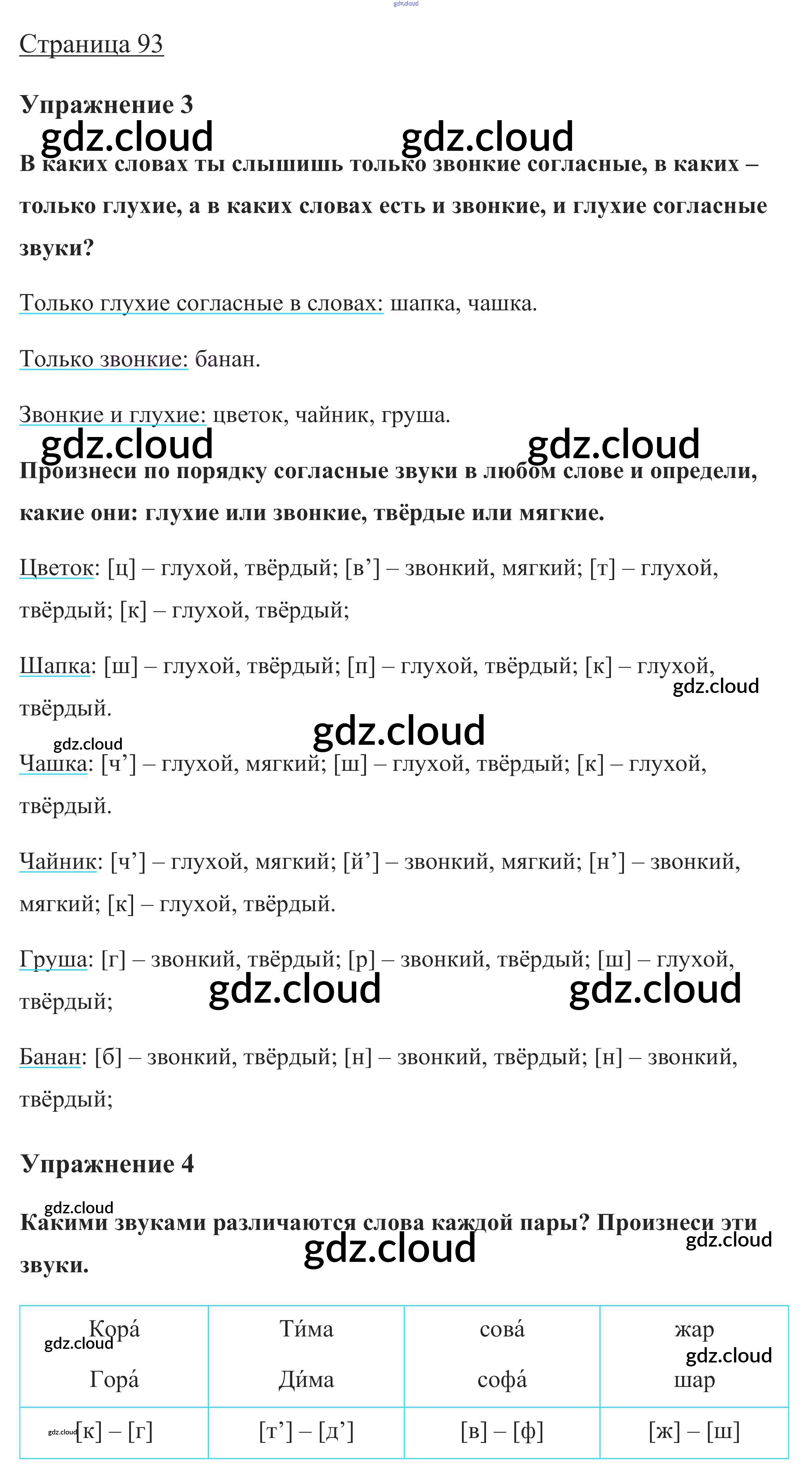 Ответ на задание стр. 93 Учебник Русский язык за 1 (первый) класс Канакина, Горецкий Школа России 2013
