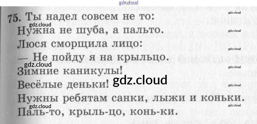 Ответ на задание 75 Учебник Русский язык за 1 (первый) класс Зеленина, Хохлова 2011 ФГОС онлайн и без номера телефона.