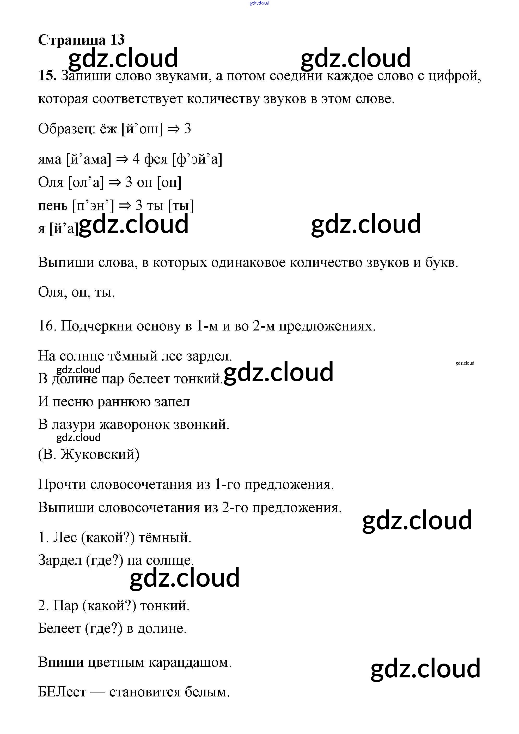 Ответ на задание 13 Тетрадь для самостоятельной работы Русский язык за 2 (второй) класс Байкова, Малаховская, Гольфман 2017 Часть 1, 2