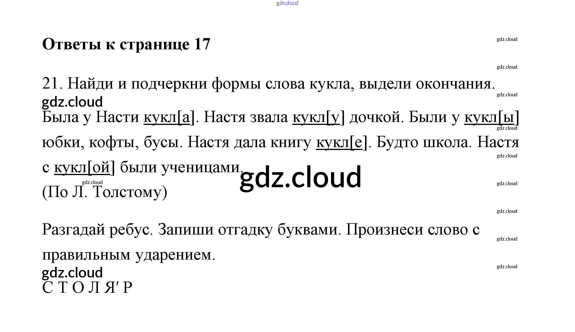 Ответ на задание 17 Тетрадь для самостоятельной работы Русский язык за 2 (второй) класс Байкова, Малаховская, Гольфман 2017 Часть 1, 2
