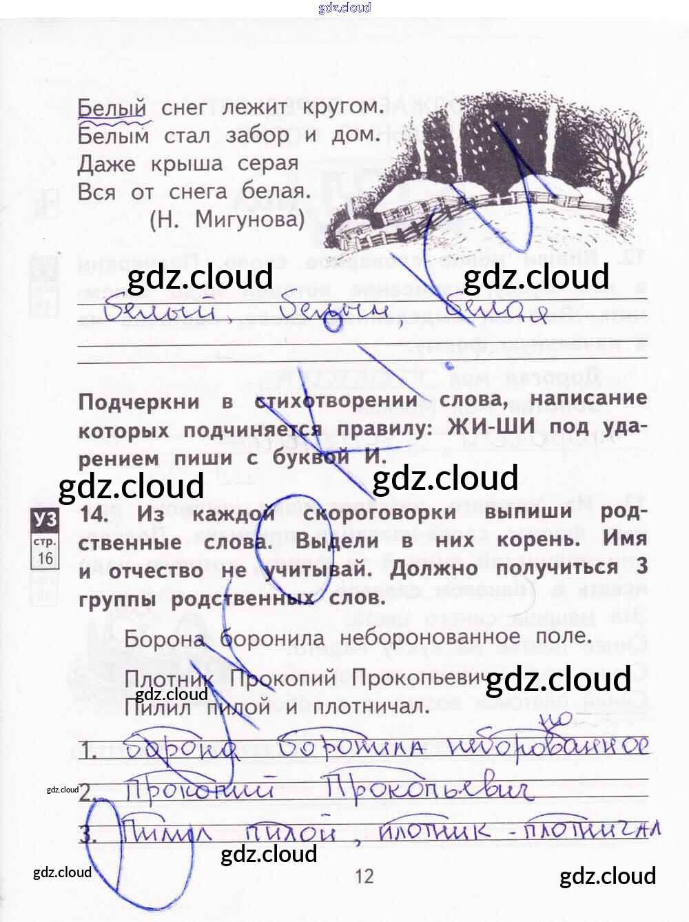 Ответ на задание 12 Тетрадь для самостоятельной работы Русский язык за 2 (второй) класс Байкова, Малаховская, Гольфман 2017 Часть 1, 2