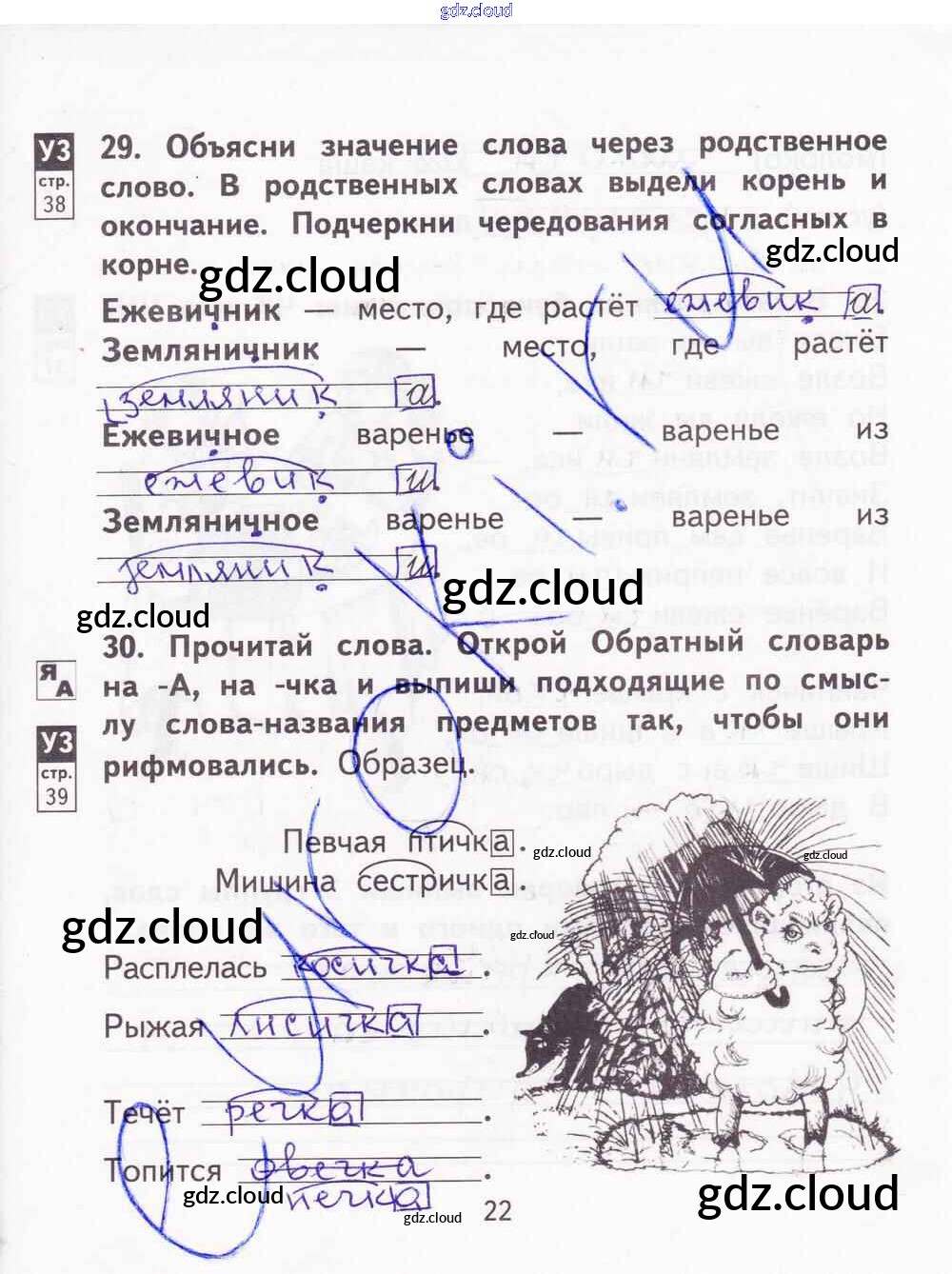Ответ на задание 22 Тетрадь для самостоятельной работы Русский язык за 2 (второй) класс Байкова, Малаховская, Гольфман 2017 Часть 1, 2