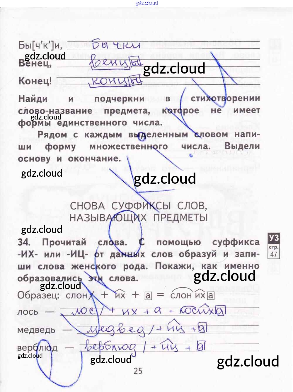 Ответ на задание 25 Тетрадь для самостоятельной работы Русский язык за 2 (второй) класс Байкова, Малаховская, Гольфман 2017 Часть 1, 2
