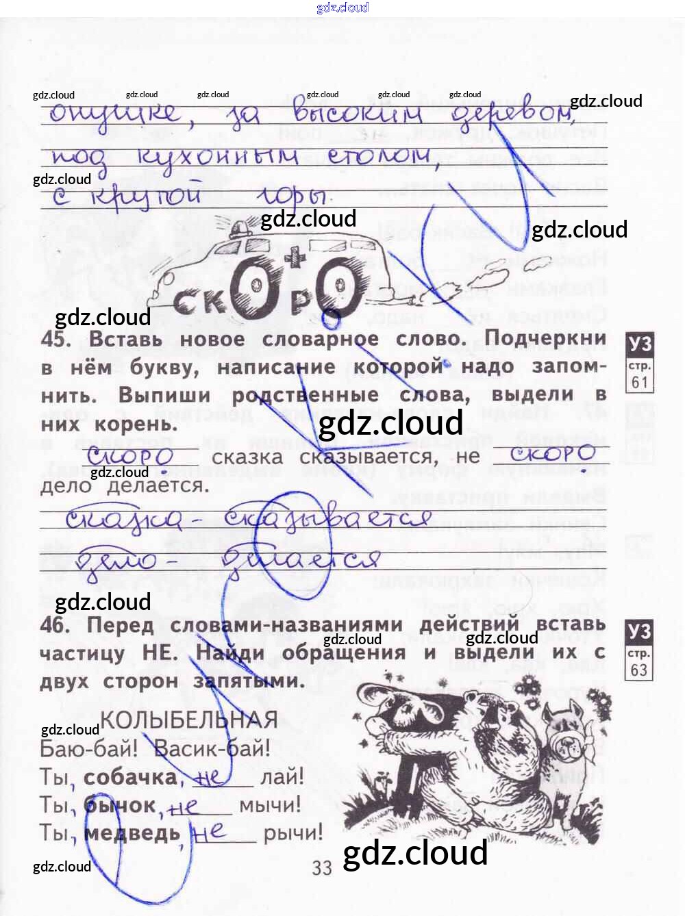 Ответ на задание 33 Тетрадь для самостоятельной работы Русский язык за 2 (второй) класс Байкова, Малаховская, Гольфман 2017 Часть 1, 2