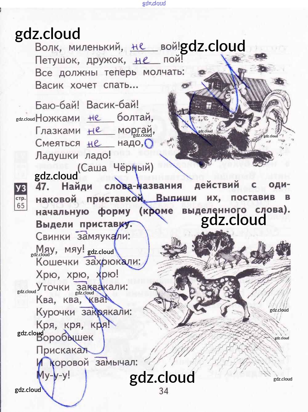 Ответ на задание 34 Тетрадь для самостоятельной работы Русский язык за 2 (второй) класс Байкова, Малаховская, Гольфман 2017 Часть 1, 2