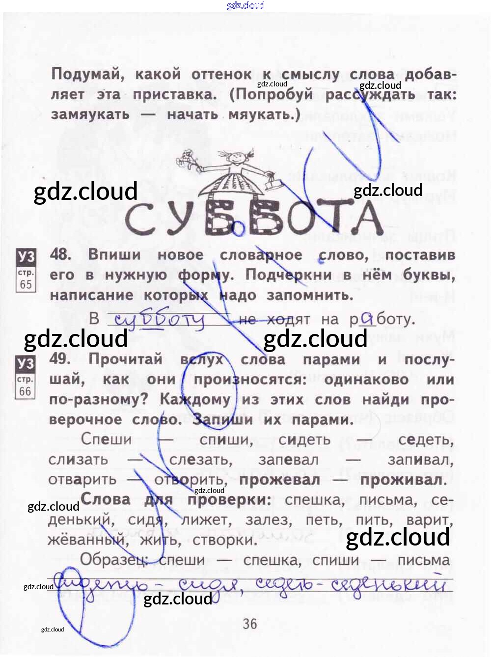 Ответ на задание 36 Тетрадь для самостоятельной работы Русский язык за 2 (второй) класс Байкова, Малаховская, Гольфман 2017 Часть 1, 2