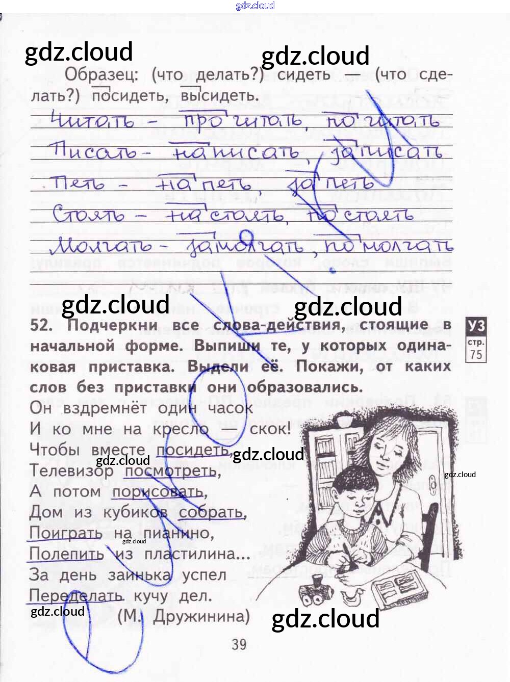 Ответ на задание 39 Тетрадь для самостоятельной работы Русский язык за 2 (второй) класс Байкова, Малаховская, Гольфман 2017 Часть 1, 2