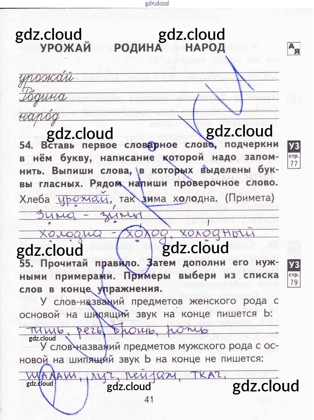 Ответ на задание 41 Тетрадь для самостоятельной работы Русский язык за 2 (второй) класс Байкова, Малаховская, Гольфман 2017 Часть 1, 2