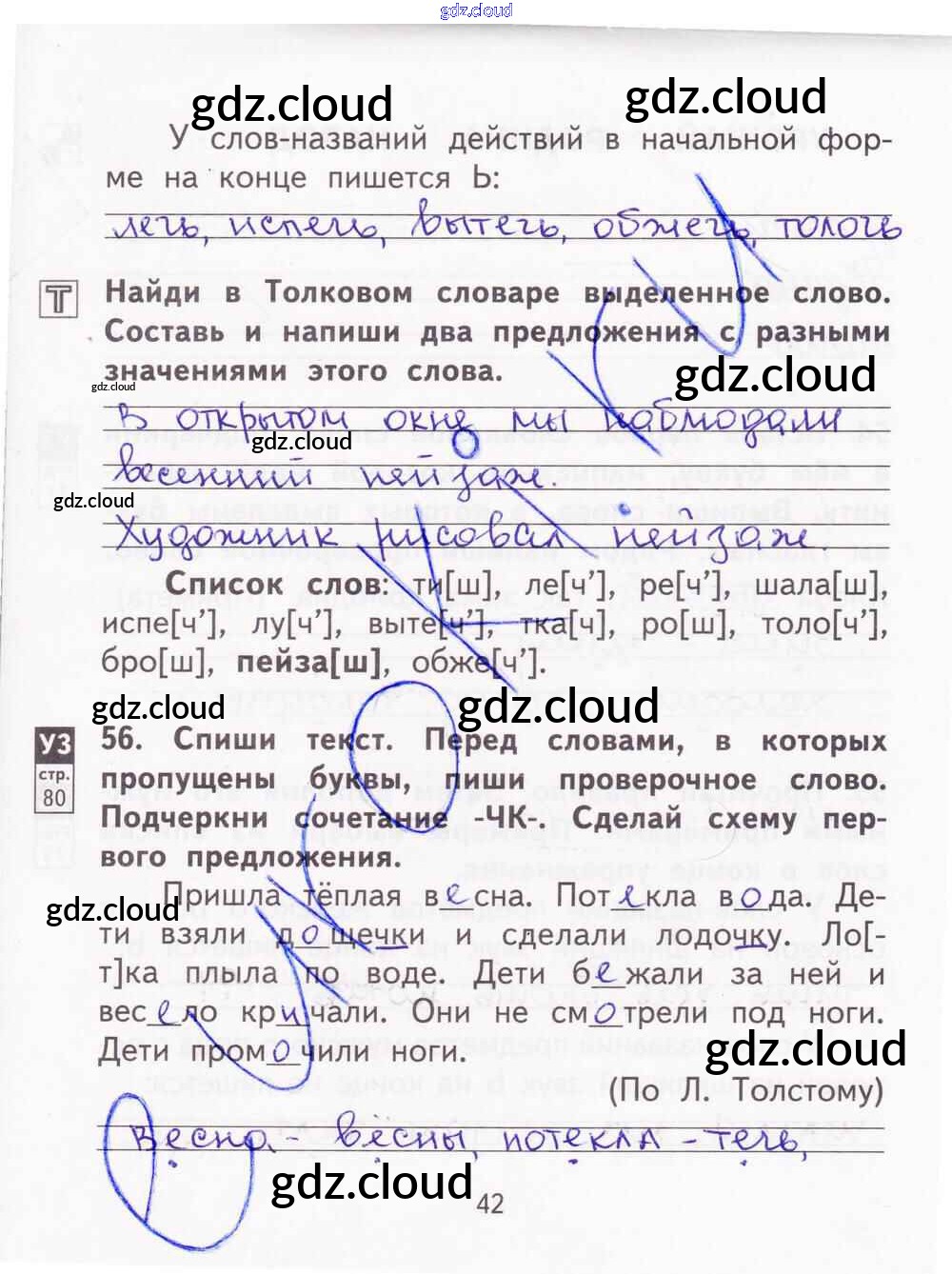 Ответ на задание 42 Тетрадь для самостоятельной работы Русский язык за 2 (второй) класс Байкова, Малаховская, Гольфман 2017 Часть 1, 2