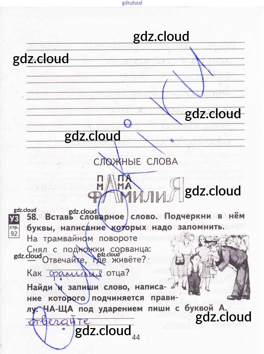 Ответ на задание 44 Тетрадь для самостоятельной работы Русский язык за 2 (второй) класс Байкова, Малаховская, Гольфман 2017 Часть 1, 2