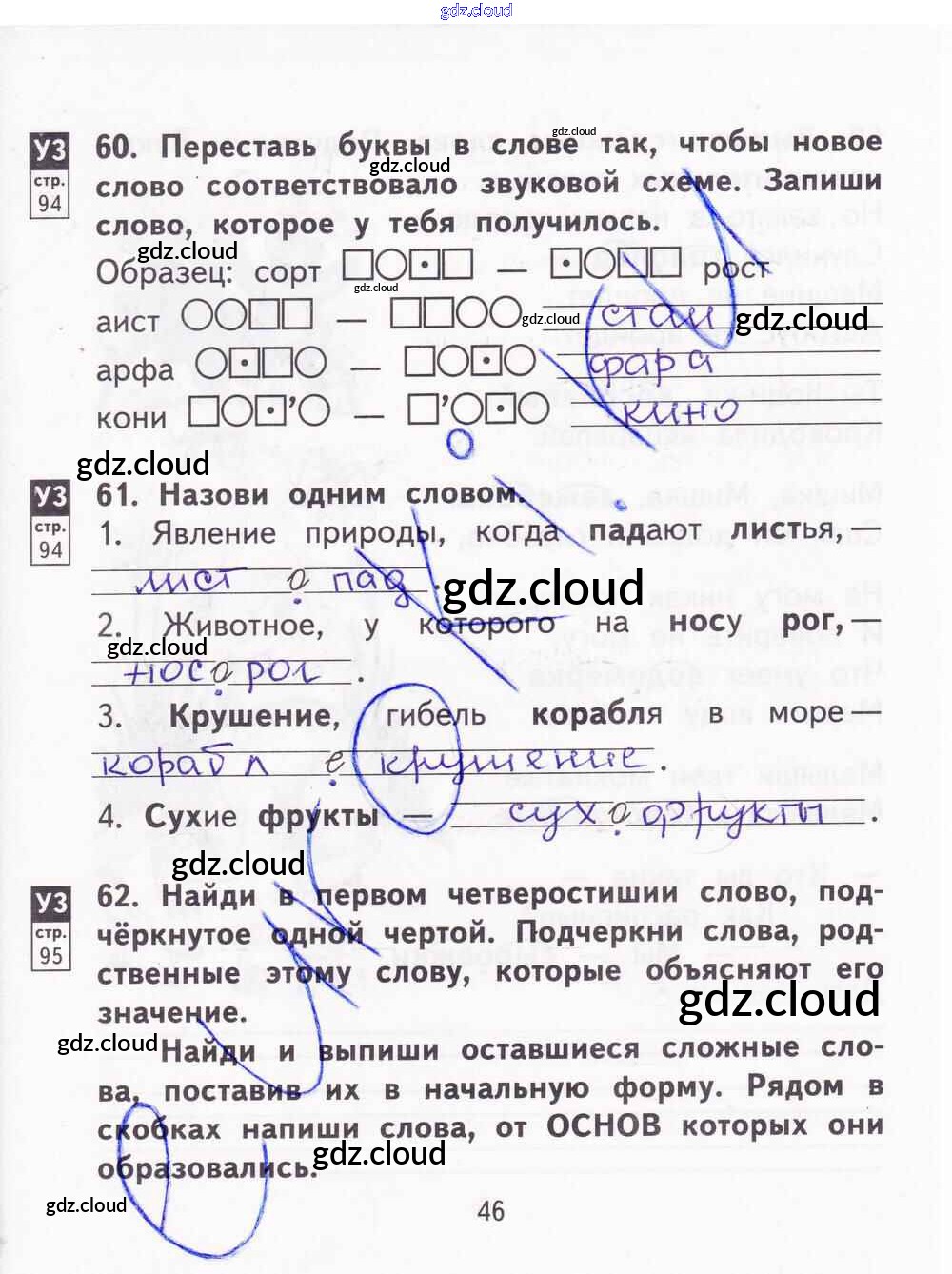 Ответ на задание 46 Тетрадь для самостоятельной работы Русский язык за 2 (второй) класс Байкова, Малаховская, Гольфман 2017 Часть 1, 2