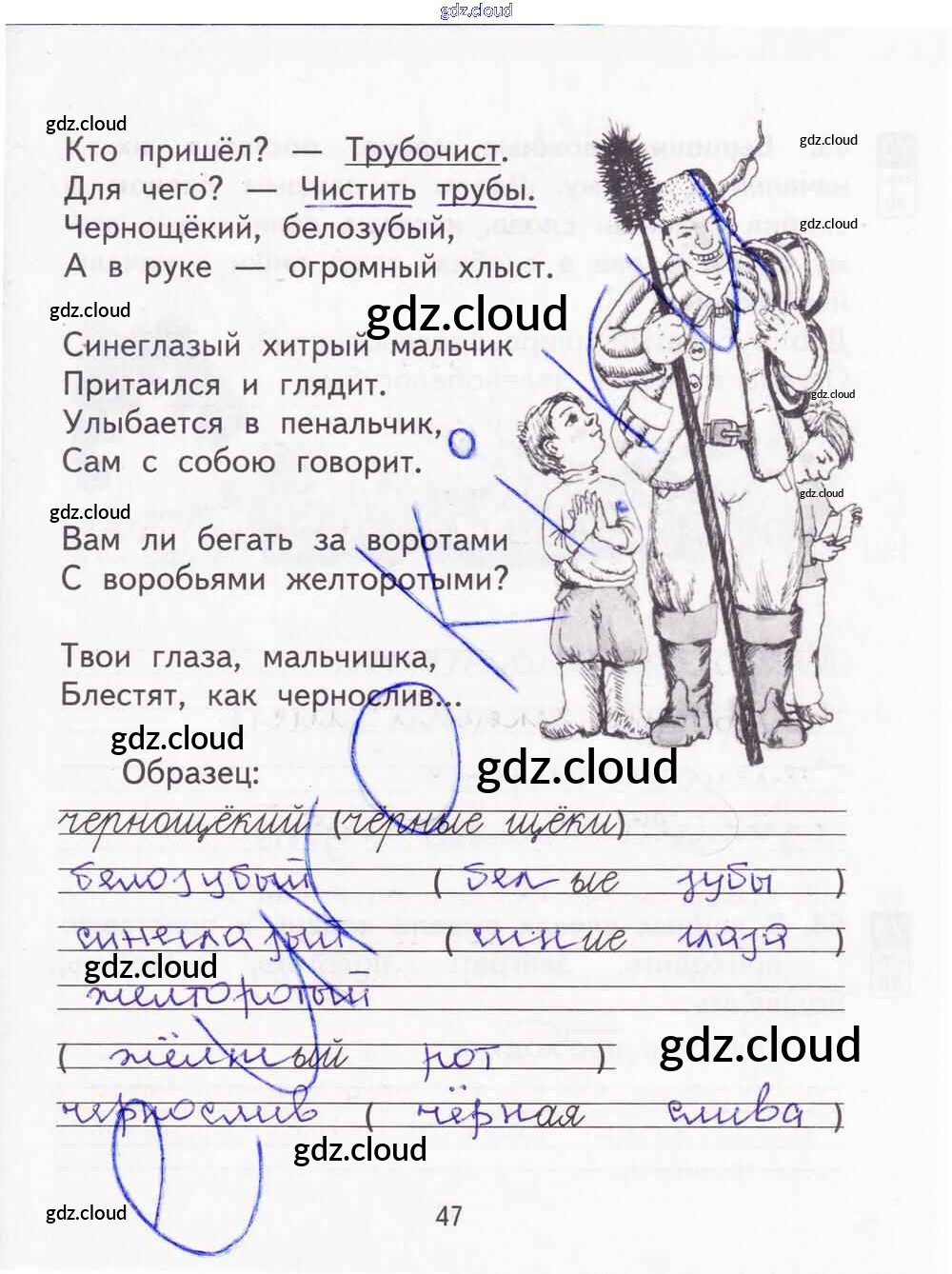 Ответ на задание 47 Тетрадь для самостоятельной работы Русский язык за 2 (второй) класс Байкова, Малаховская, Гольфман 2017 Часть 1, 2