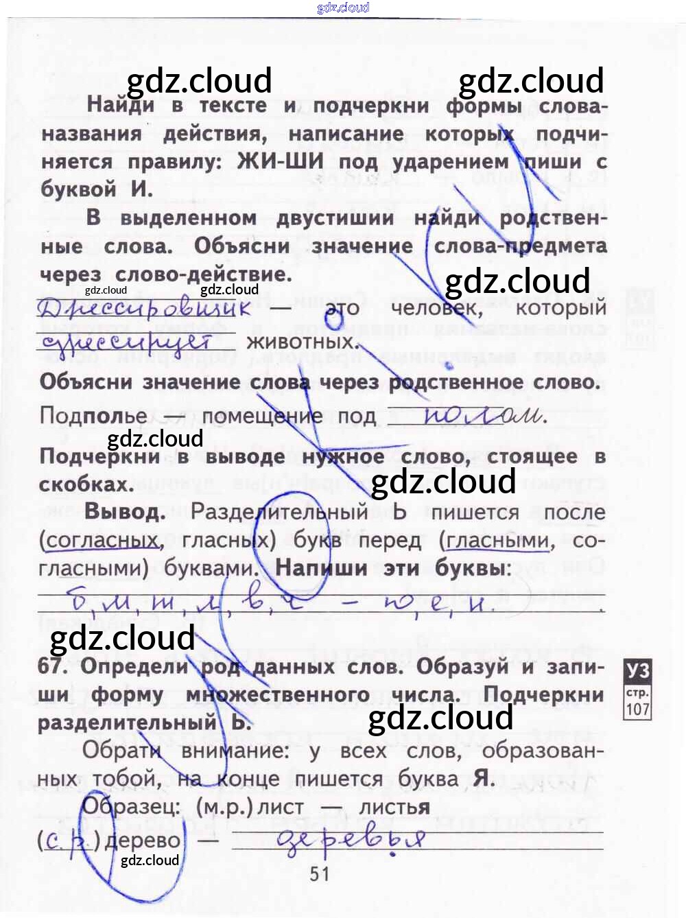 Ответ на задание 51 Тетрадь для самостоятельной работы Русский язык за 2 (второй) класс Байкова, Малаховская, Гольфман 2017 Часть 1, 2