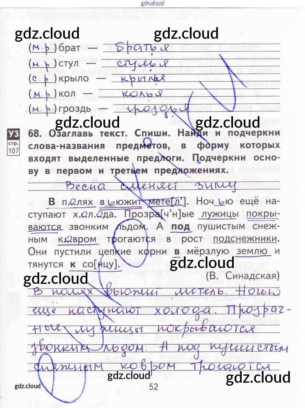 Ответ на задание 52 Тетрадь для самостоятельной работы Русский язык за 2 (второй) класс Байкова, Малаховская, Гольфман 2017 Часть 1, 2