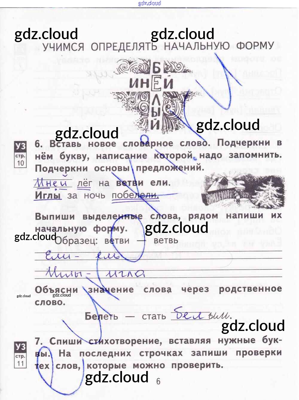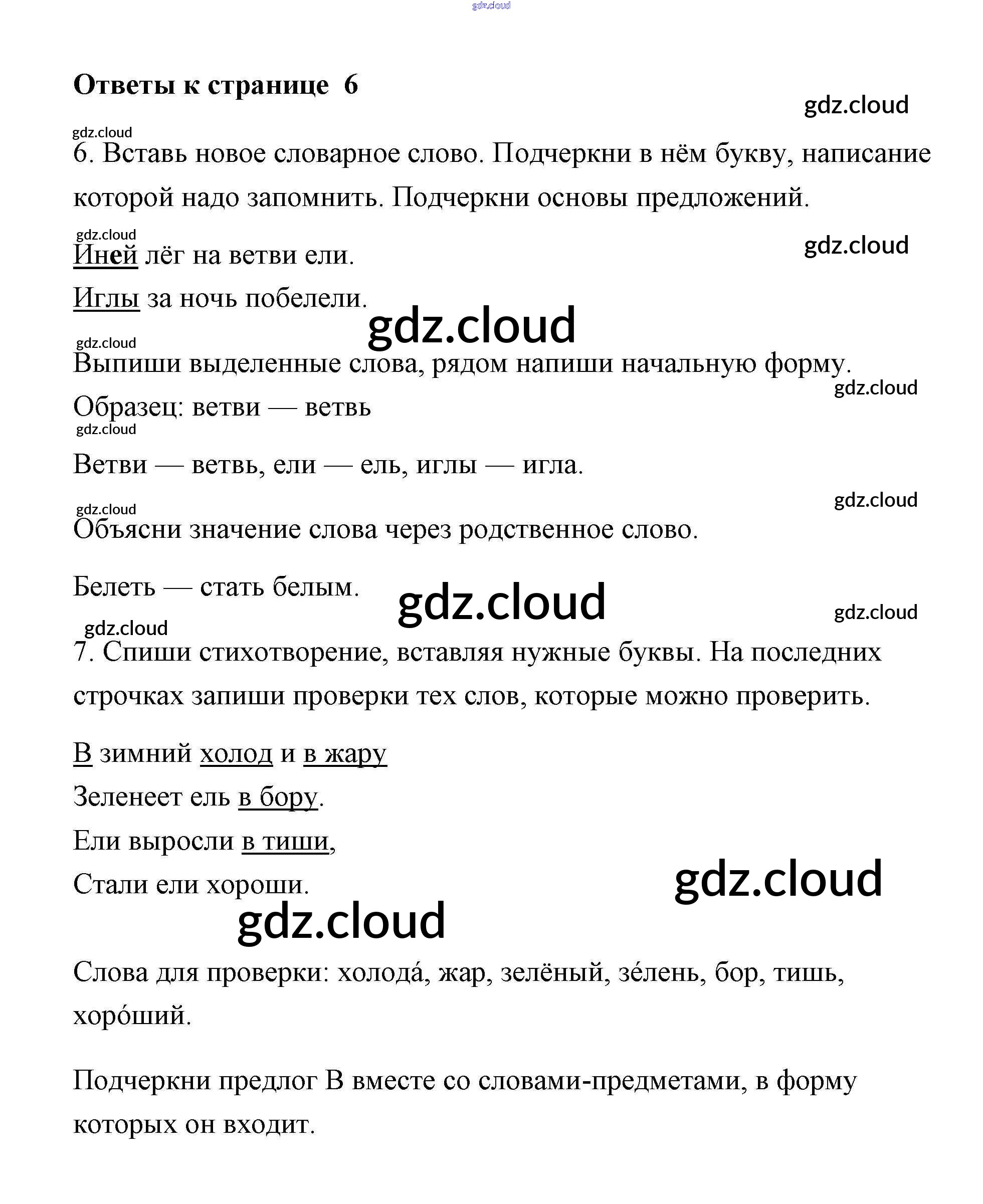 Ответ на задание 6 Тетрадь для самостоятельной работы Русский язык за 2 (второй) класс Байкова, Малаховская, Гольфман 2017 Часть 1, 2