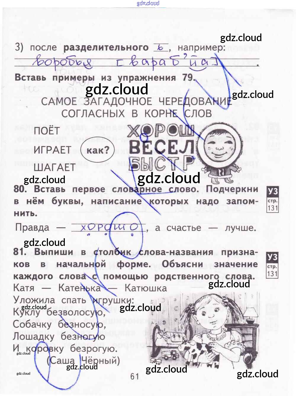 Ответ на задание 61 Тетрадь для самостоятельной работы Русский язык за 2 (второй) класс Байкова, Малаховская, Гольфман 2017 Часть 1, 2