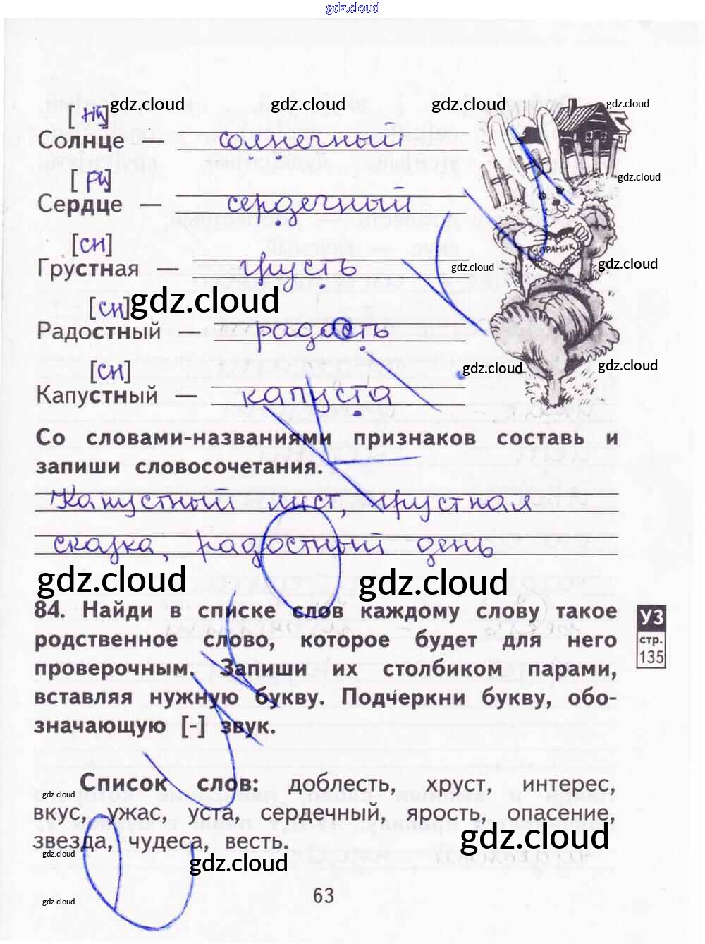 Ответ на задание 63 Тетрадь для самостоятельной работы Русский язык за 2 (второй) класс Байкова, Малаховская, Гольфман 2017 Часть 1, 2