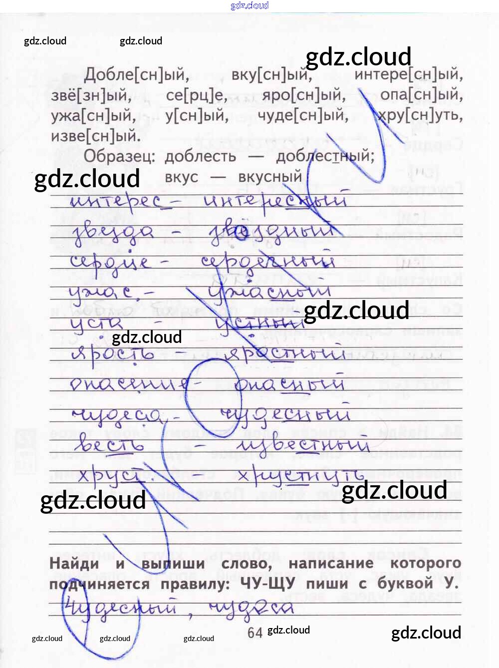 Ответ на задание 64 Тетрадь для самостоятельной работы Русский язык за 2 (второй) класс Байкова, Малаховская, Гольфман 2017 Часть 1, 2