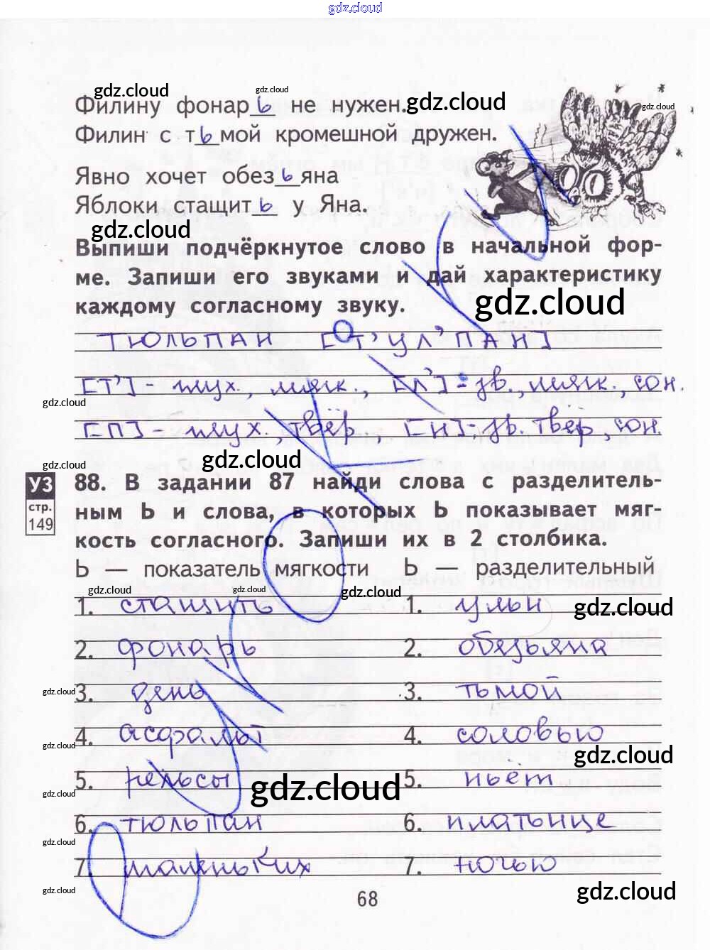 Ответ на задание 68 Тетрадь для самостоятельной работы Русский язык за 2 (второй) класс Байкова, Малаховская, Гольфман 2017 Часть 1, 2