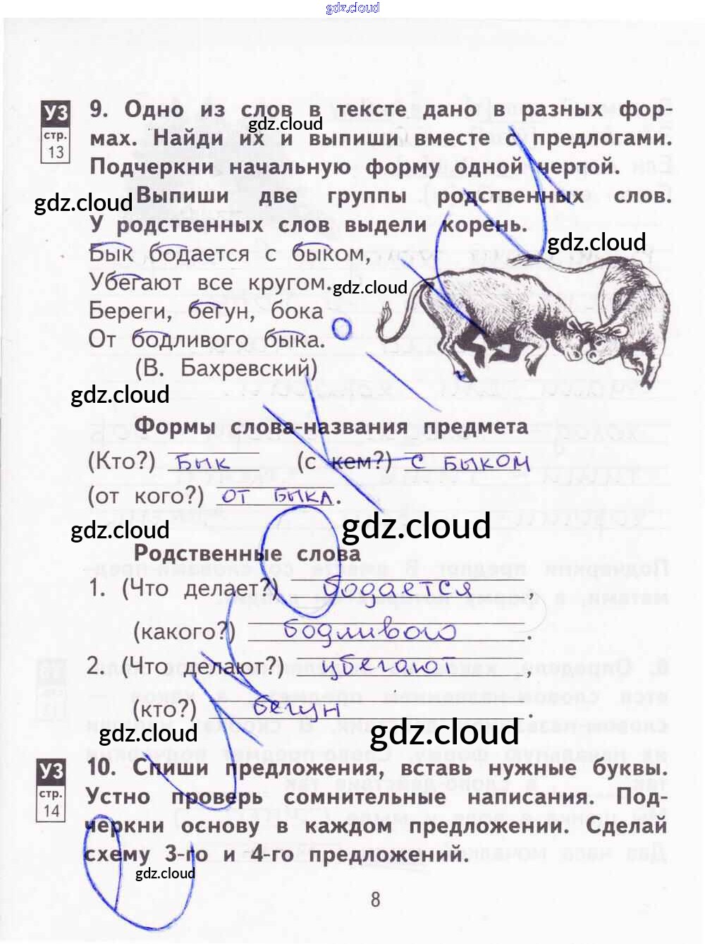 Ответ на задание 8 Тетрадь для самостоятельной работы Русский язык за 2 (второй) класс Байкова, Малаховская, Гольфман 2017 Часть 1, 2