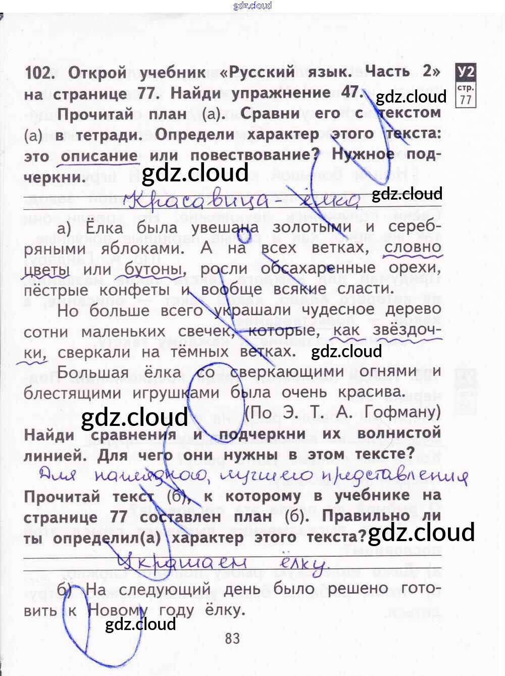 Ответ на задание 83 Тетрадь для самостоятельной работы Русский язык за 2 (второй) класс Байкова, Малаховская, Гольфман 2017 Часть 1, 2