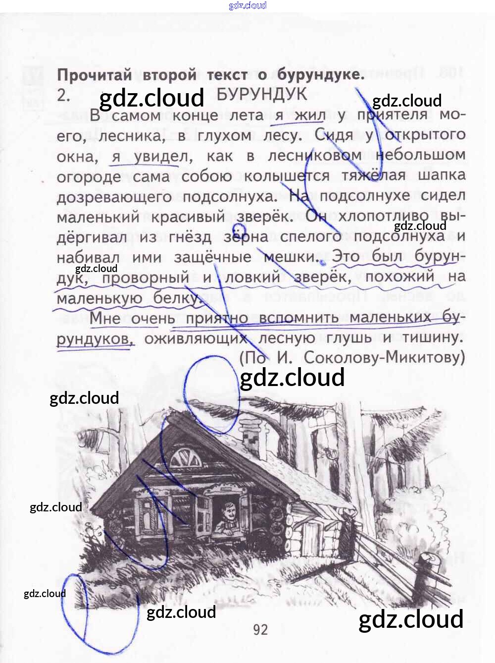 Ответ на задание 92 Тетрадь для самостоятельной работы Русский язык за 2 (второй) класс Байкова, Малаховская, Гольфман 2017 Часть 1, 2
