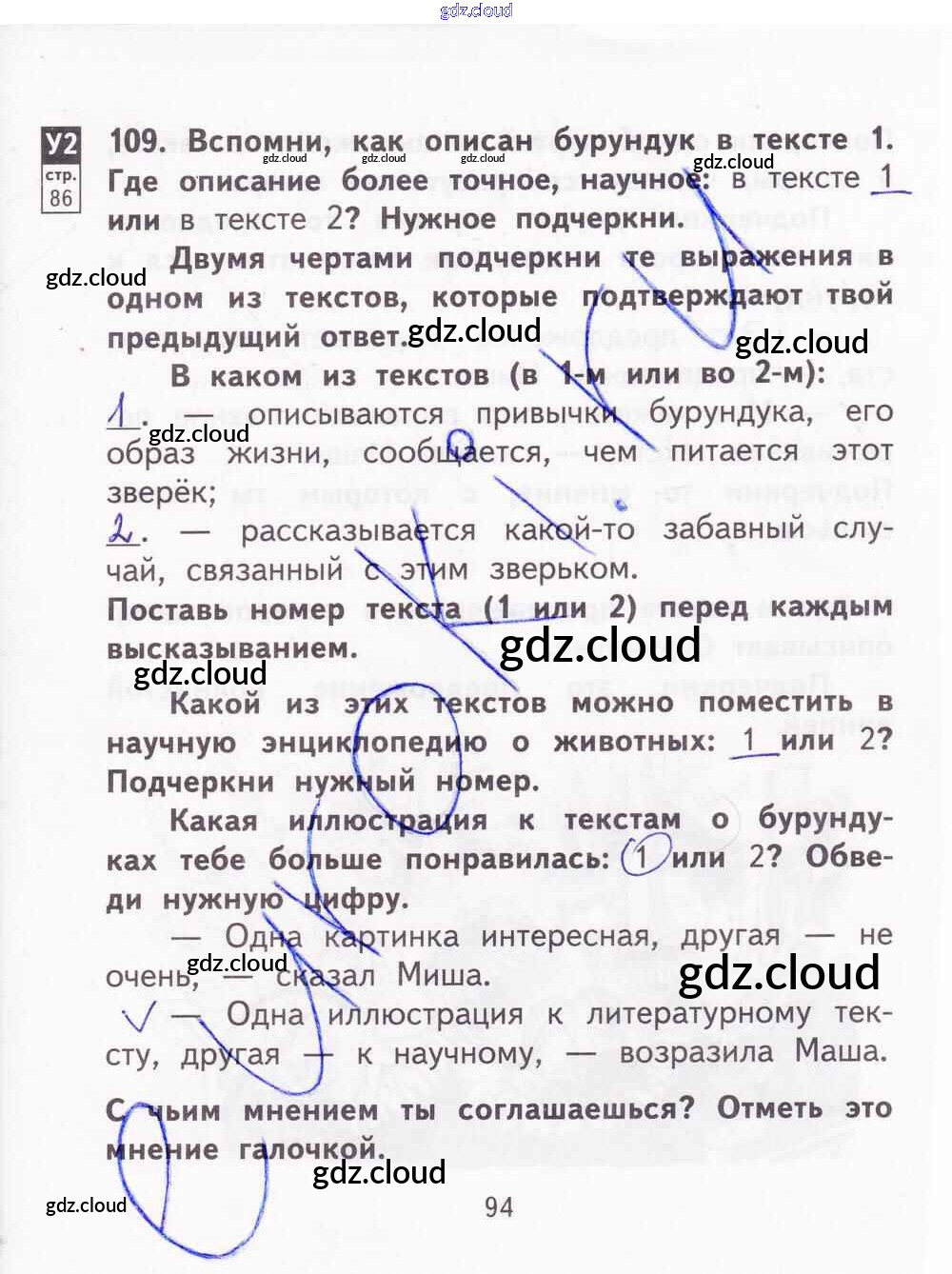 Ответ на задание 94 Тетрадь для самостоятельной работы Русский язык за 2 (второй) класс Байкова, Малаховская, Гольфман 2017 Часть 1, 2