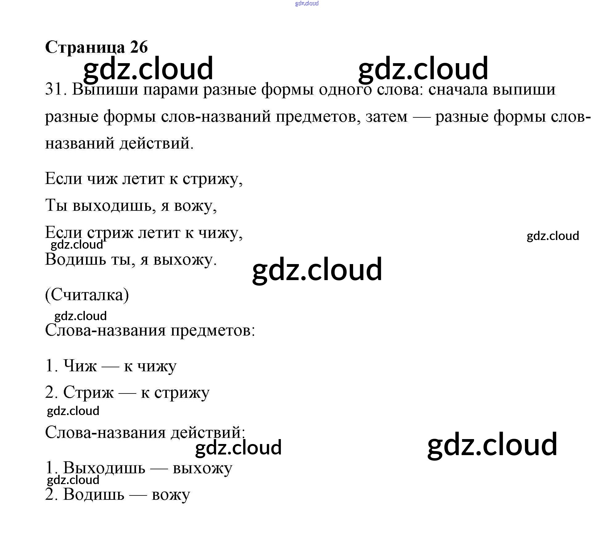 Ответ на задание 26 Тетрадь для самостоятельной работы Русский язык за 2 (второй) класс Байкова, Малаховская, Гольфман 2017 Часть 1, 2