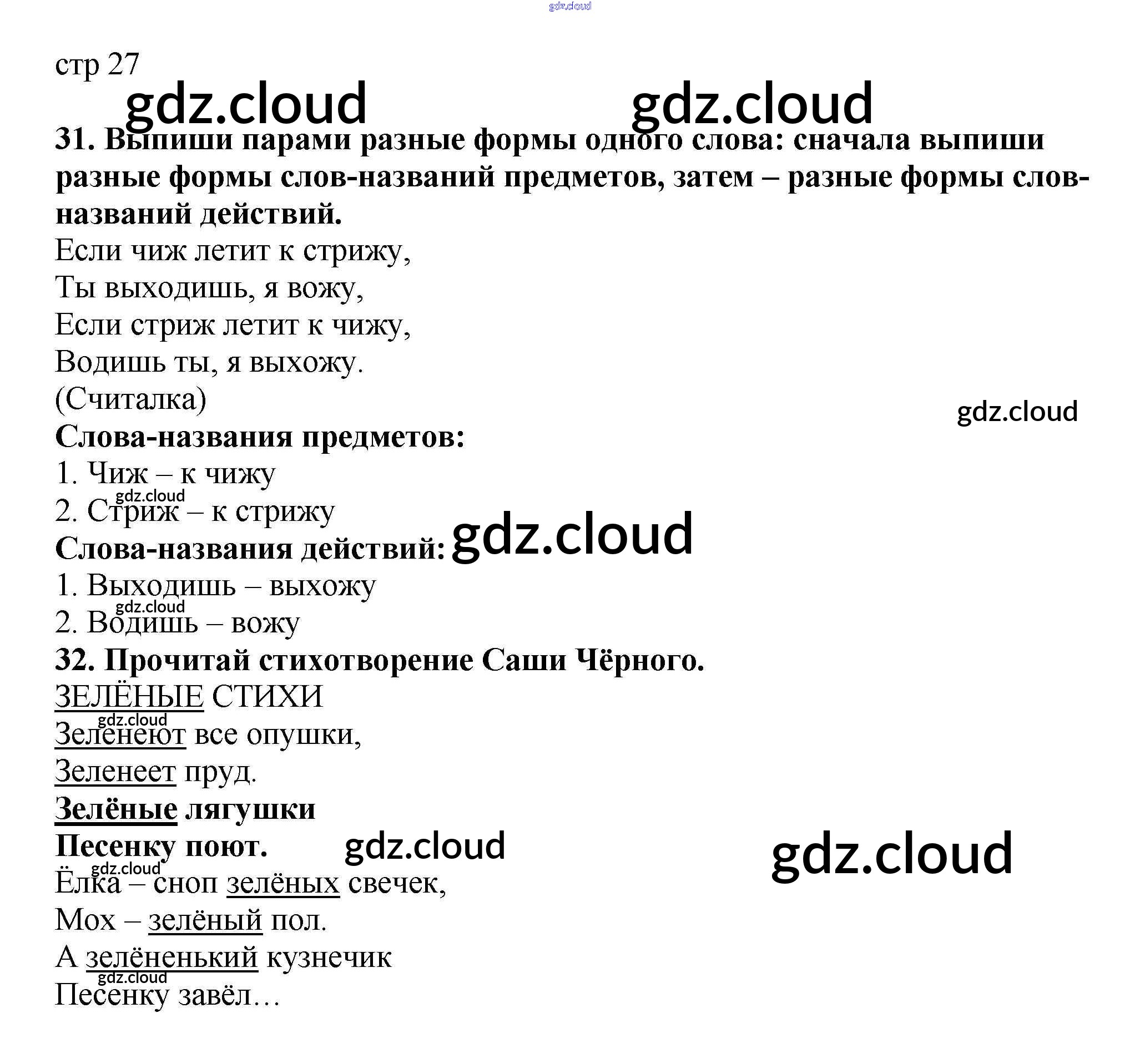 Ответ на задание 27 Тетрадь для самостоятельной работы Русский язык за 2 (второй) класс Байкова, Малаховская, Гольфман 2017 Часть 1, 2