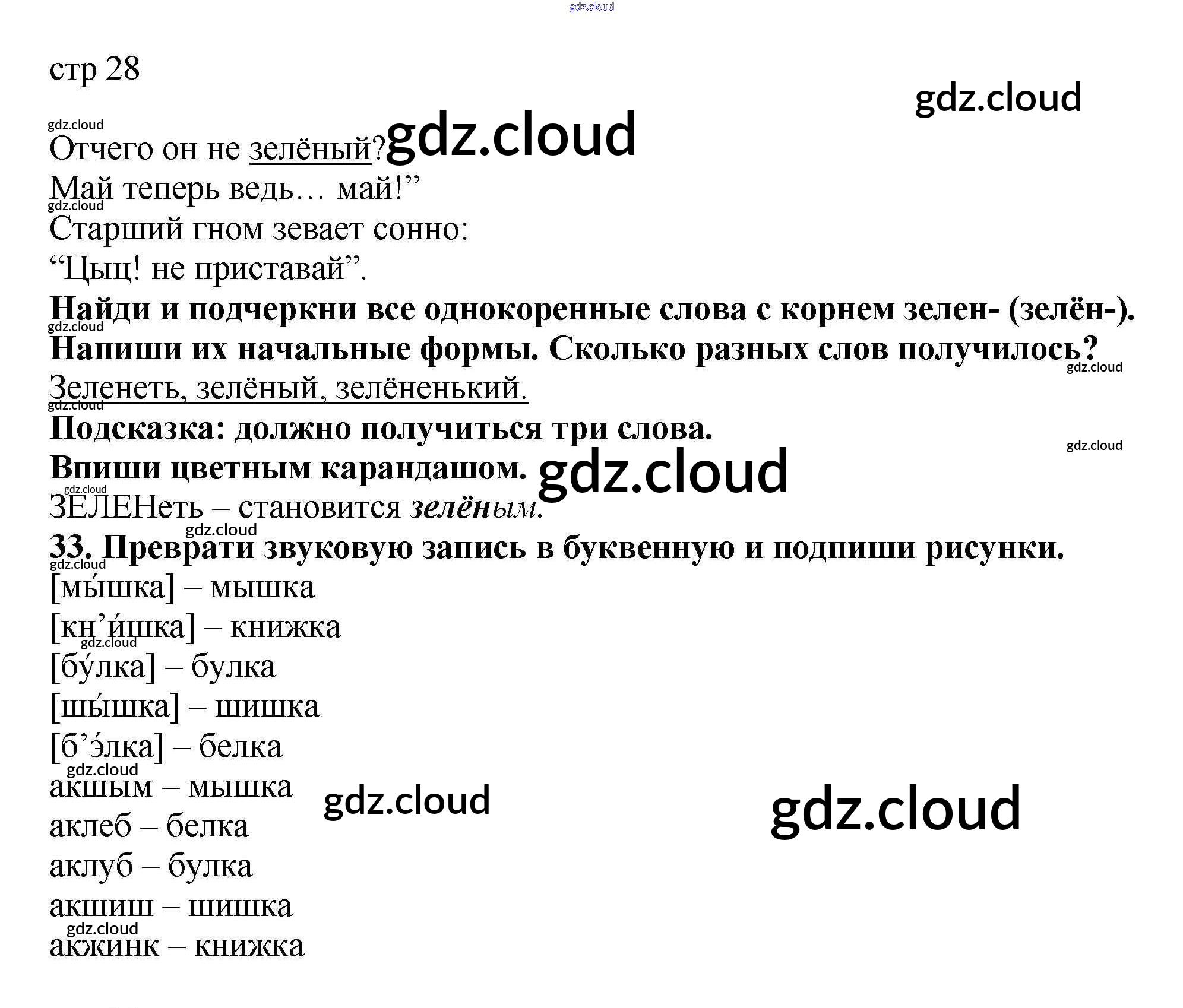Ответ на задание 28 Тетрадь для самостоятельной работы Русский язык за 2 (второй) класс Байкова, Малаховская, Гольфман 2017 Часть 1, 2