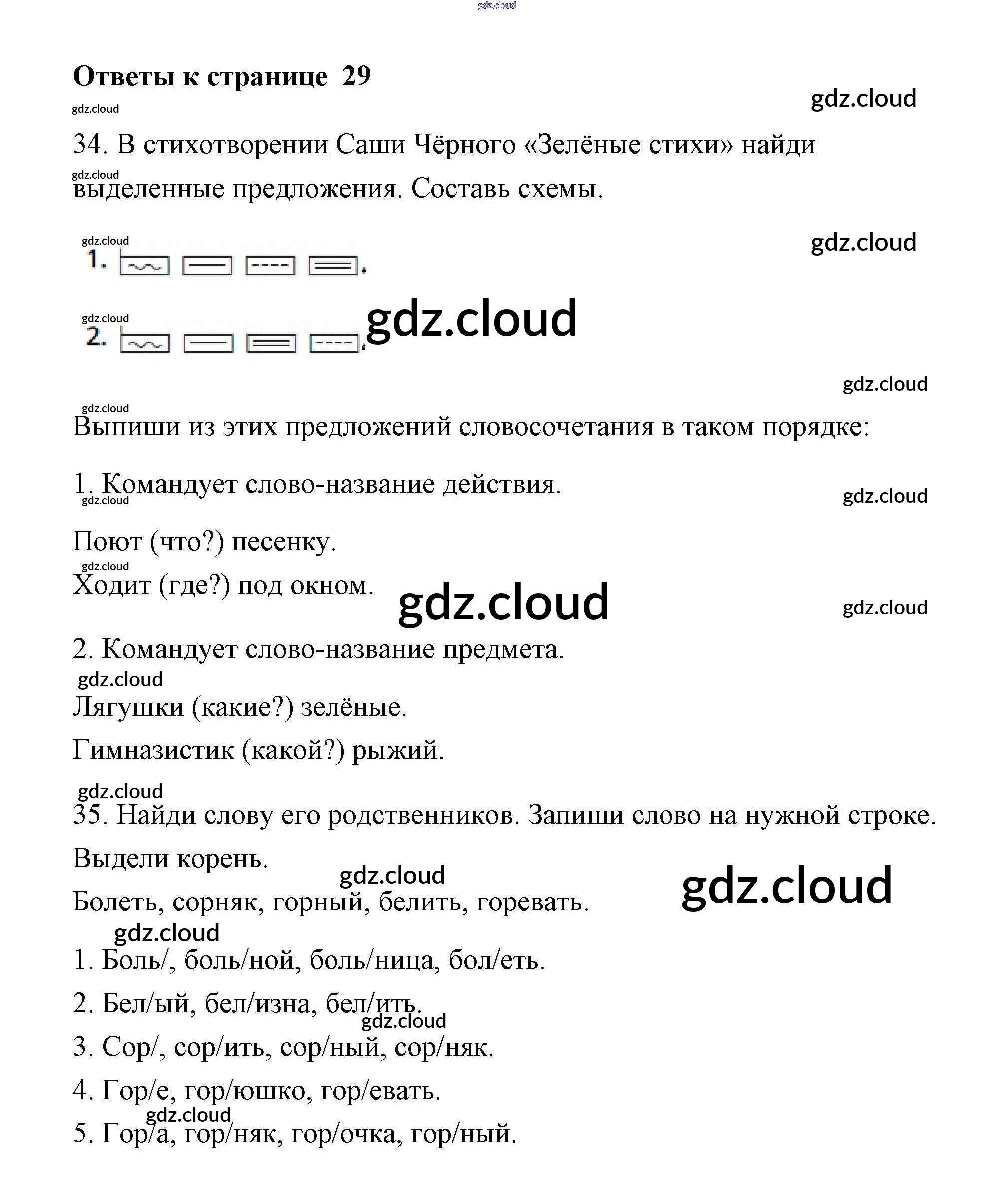 Ответ на задание 29 Тетрадь для самостоятельной работы Русский язык за 2 (второй) класс Байкова, Малаховская, Гольфман 2017 Часть 1, 2