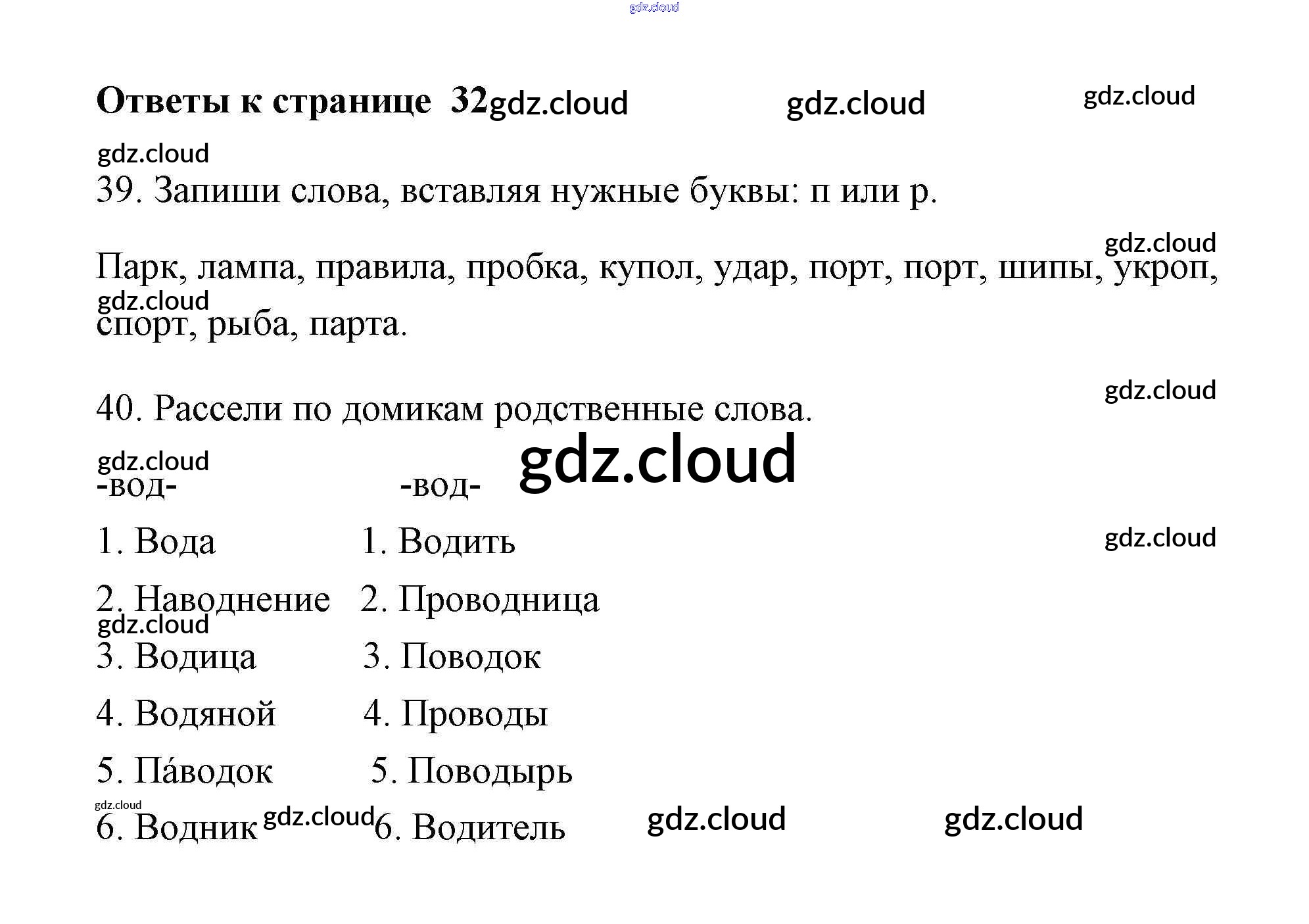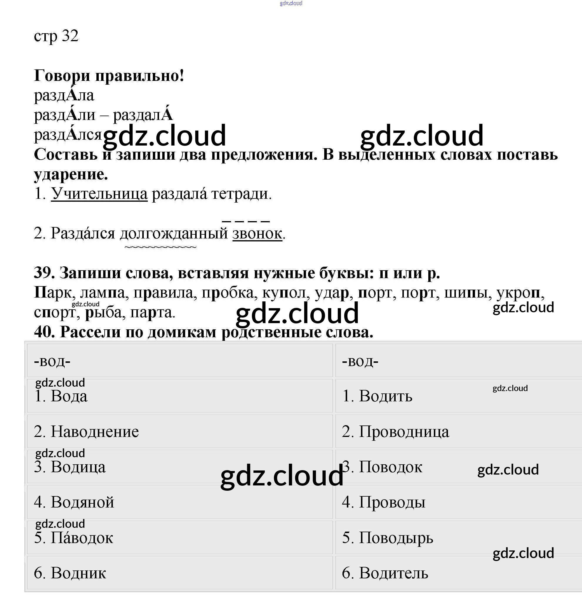 Ответ на задание 32 Тетрадь для самостоятельной работы Русский язык за 2 (второй) класс Байкова, Малаховская, Гольфман 2017 Часть 1, 2