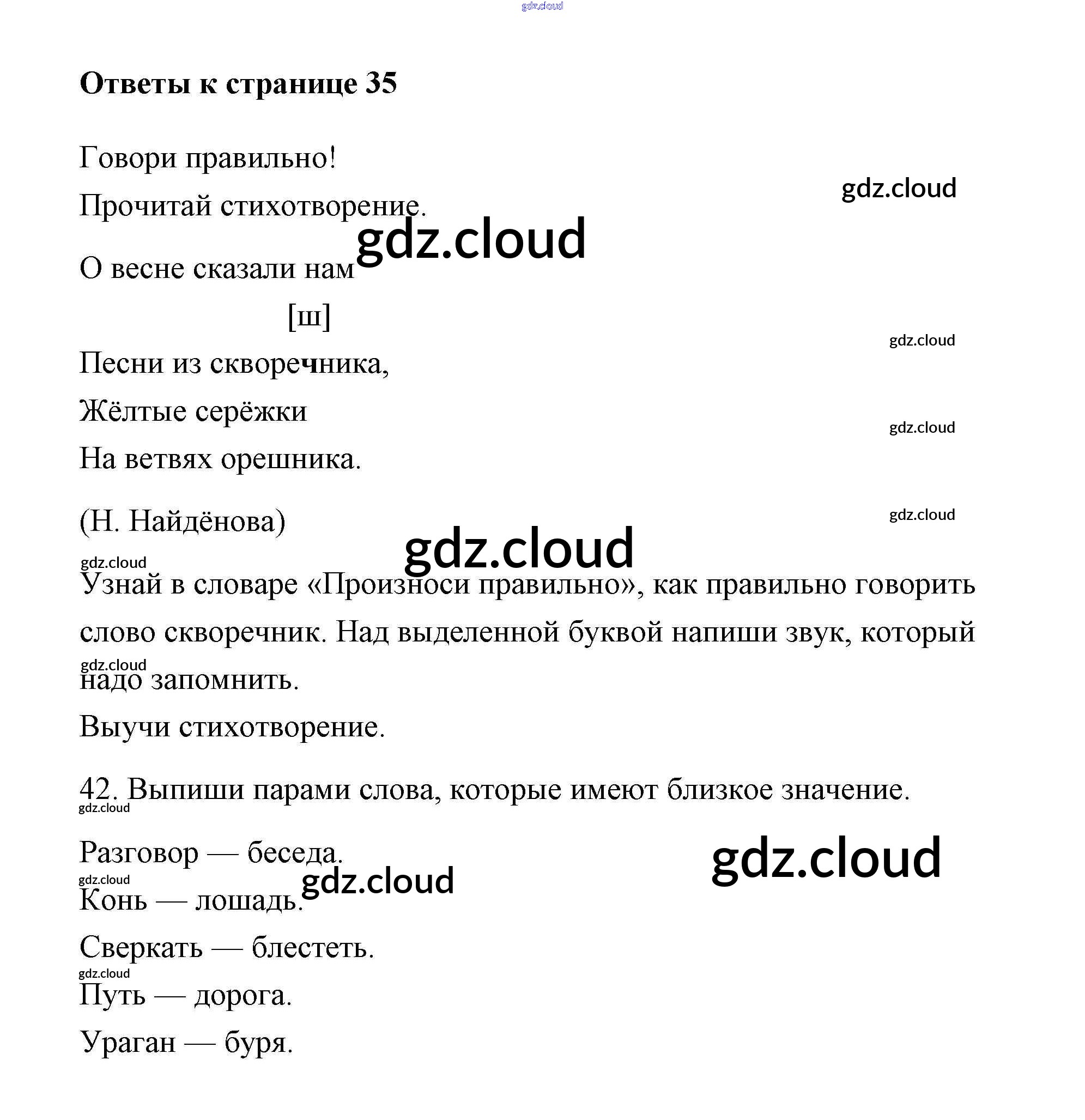 Ответ на задание 35 Тетрадь для самостоятельной работы Русский язык за 2 (второй) класс Байкова, Малаховская, Гольфман 2017 Часть 1, 2