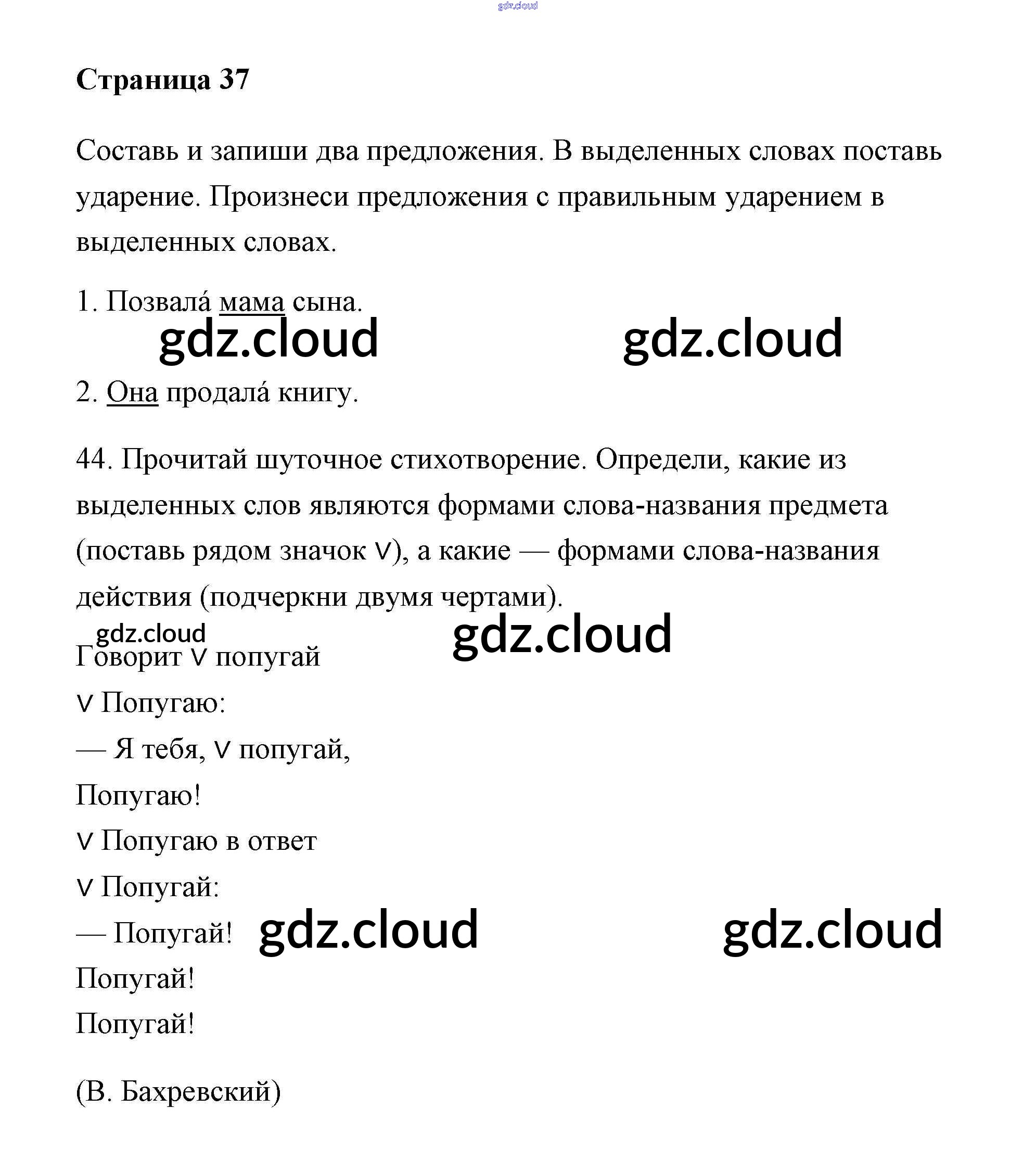 Ответ на задание 37 Тетрадь для самостоятельной работы Русский язык за 2 (второй) класс Байкова, Малаховская, Гольфман 2017 Часть 1, 2