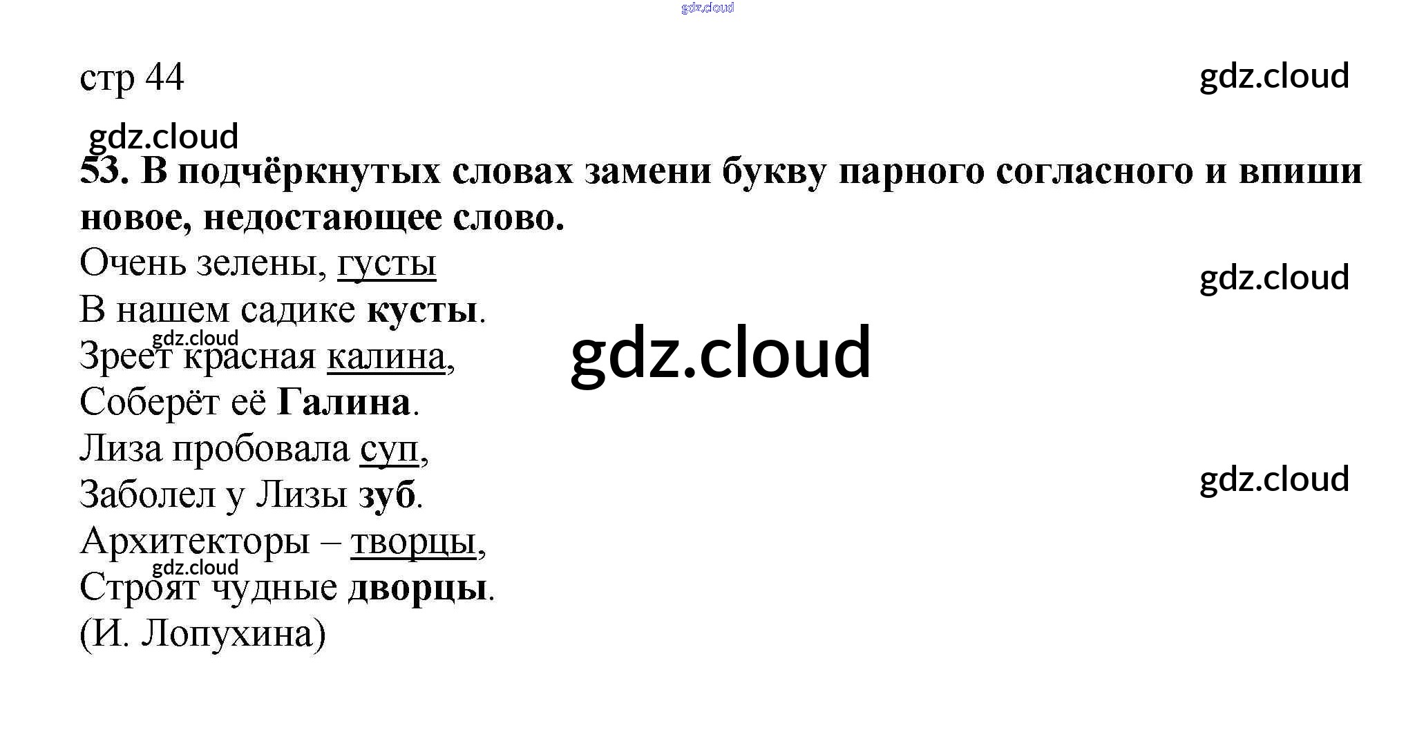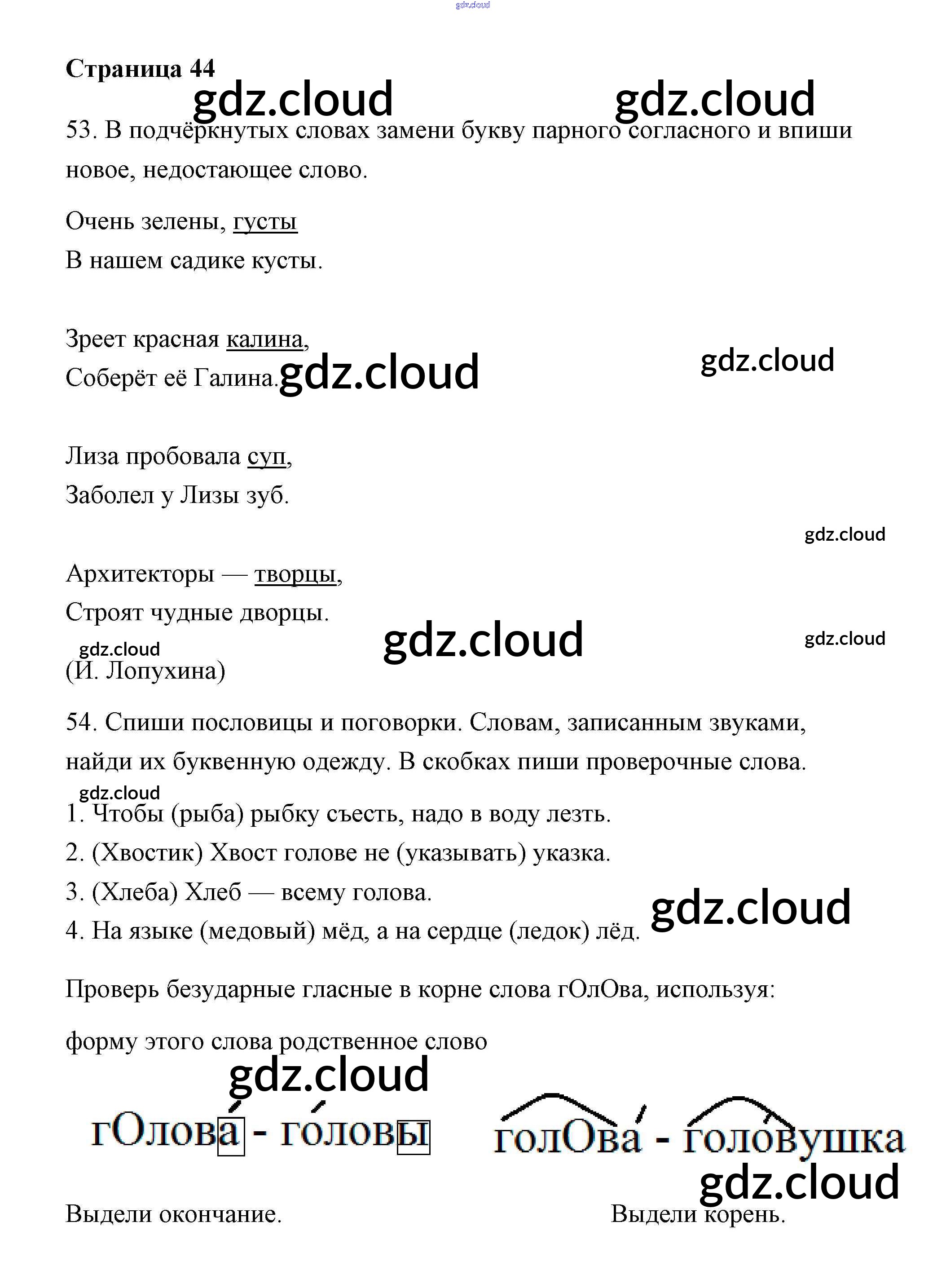 Ответ на задание 44 Тетрадь для самостоятельной работы Русский язык за 2 (второй) класс Байкова, Малаховская, Гольфман 2017 Часть 1, 2