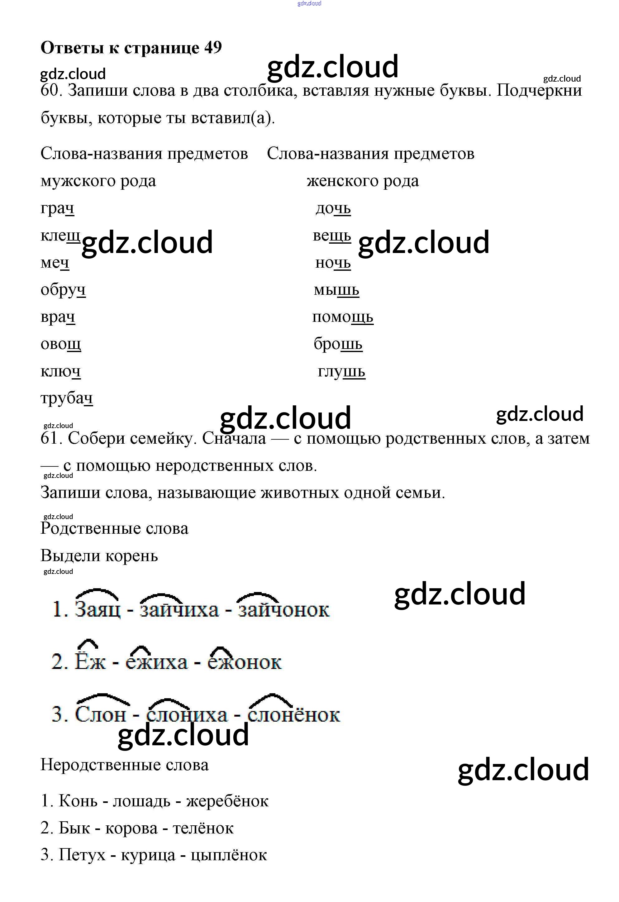 Ответ на задание 49 Тетрадь для самостоятельной работы Русский язык за 2 (второй) класс Байкова, Малаховская, Гольфман 2017 Часть 1, 2