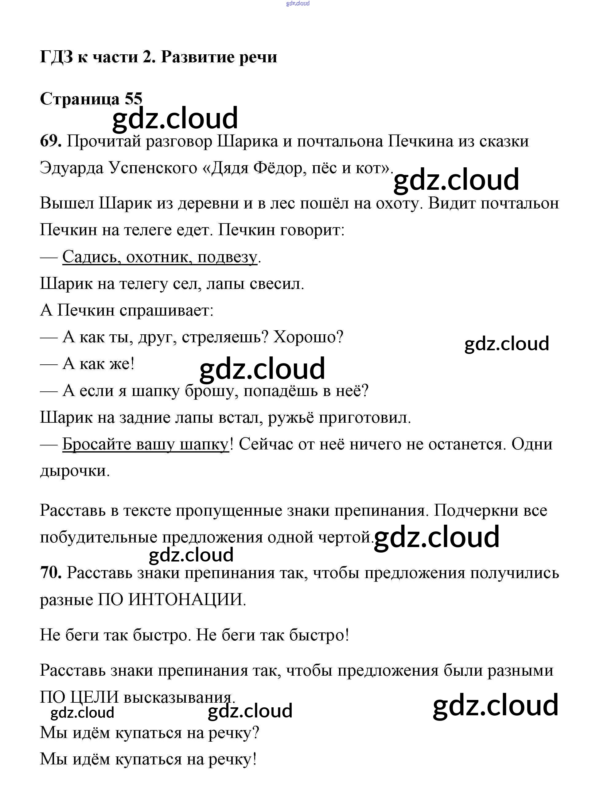 Ответ на задание 55 Тетрадь для самостоятельной работы Русский язык за 2 (второй) класс Байкова, Малаховская, Гольфман 2017 Часть 1, 2