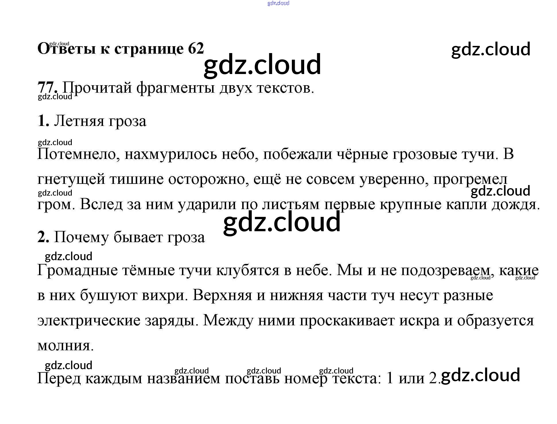 Ответ на задание 62 Тетрадь для самостоятельной работы Русский язык за 2 (второй) класс Байкова, Малаховская, Гольфман 2017 Часть 1, 2