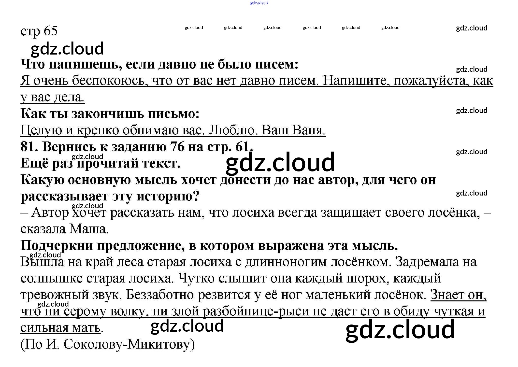 Ответ на задание 65 Тетрадь для самостоятельной работы Русский язык за 2 (второй) класс Байкова, Малаховская, Гольфман 2017 Часть 1, 2